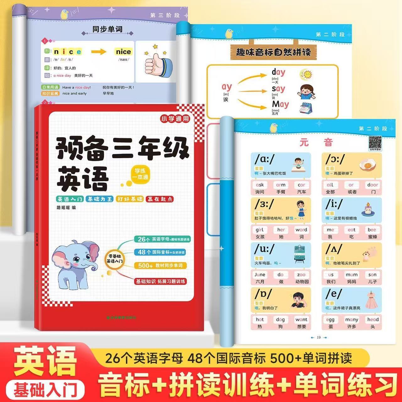2025新版 预备三年级英语学练一本通小学生一二年级升三年级英语衔接教材书零基础入门学英语音标自然拼读趣味速记英语单词记背神器