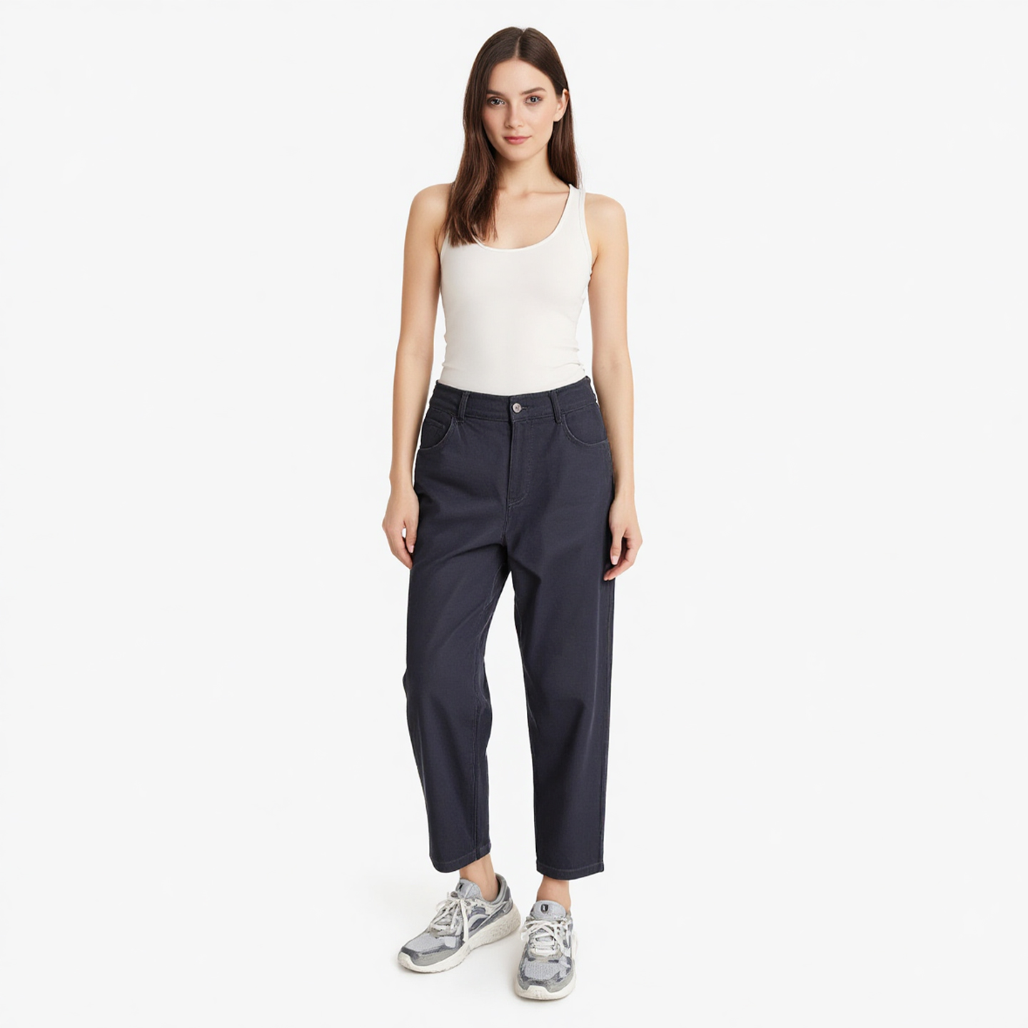 通勤百搭女裤 子高腰宽松时尚 牛仔蓝棉质休闲裤 马天奴2025秋冬新款