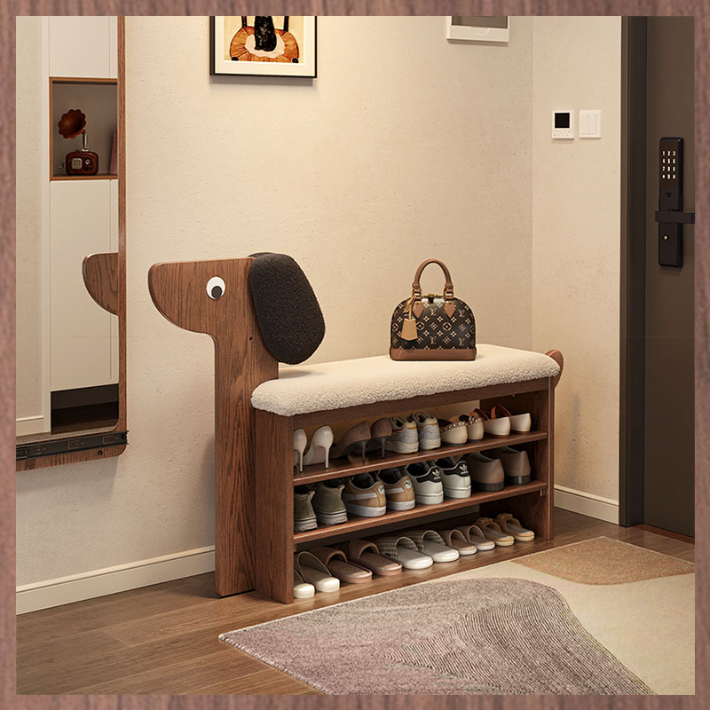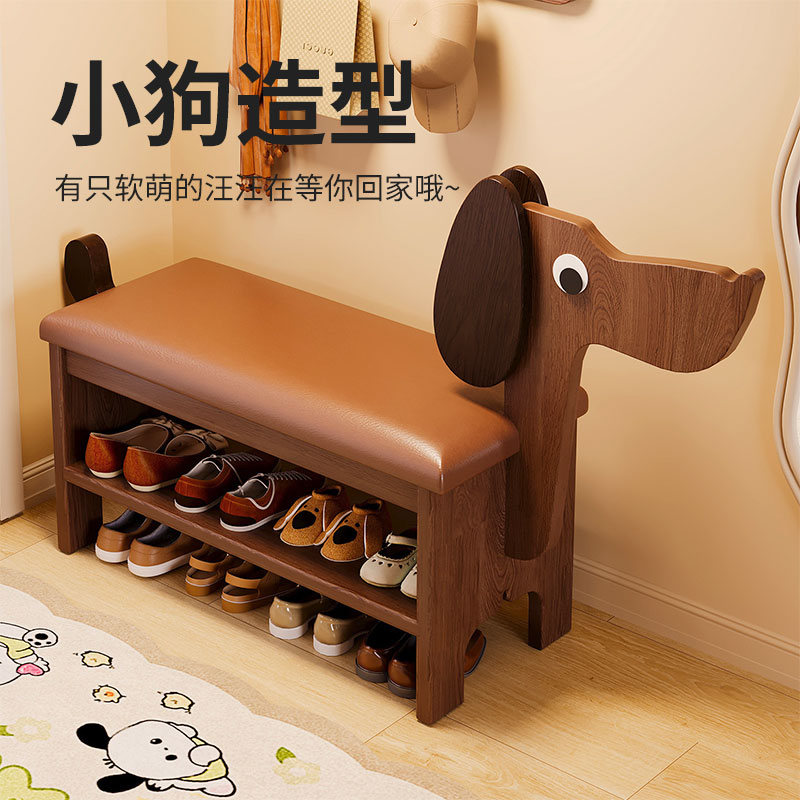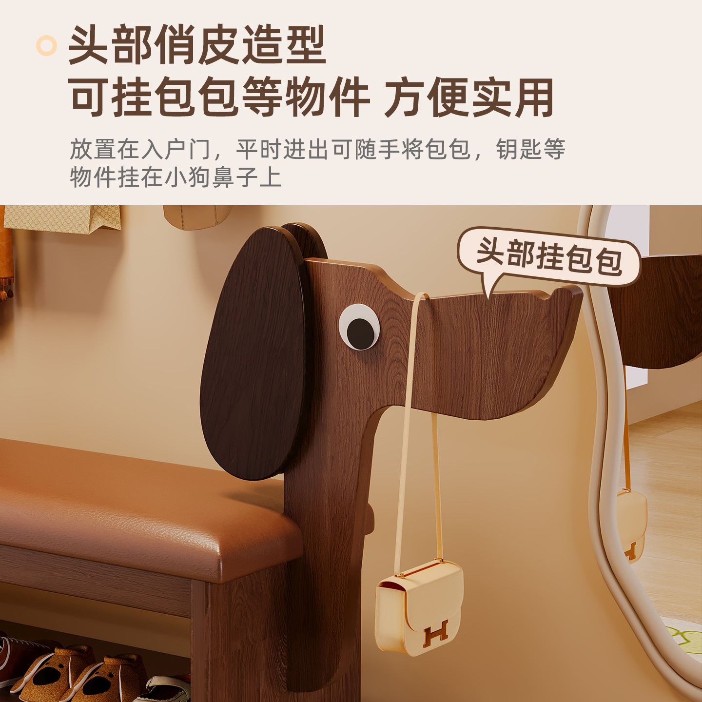实木小狗换鞋 柜坐凳一体凳 凳家用原木门口可爱创意入户玄关可坐鞋