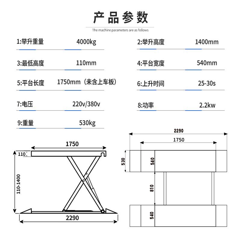 可移动一体式 1.4米4吨防水汽车举升机电动液压式 升降机超薄免安装