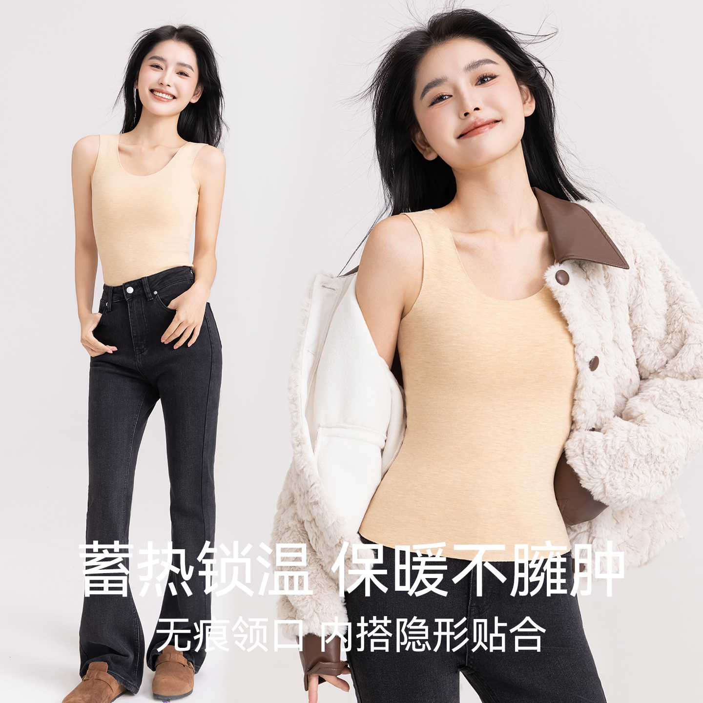 所有女生 方领 衣橱直播间 V领 钻石领 舒氧带杯保暖背心