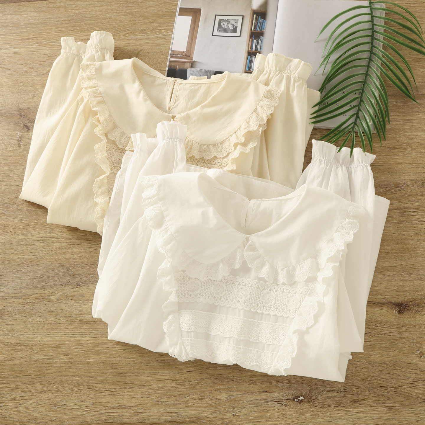 衬衣 甜美学院风减龄长袖 森系少女设计感蕾丝拼接娃娃领小衫 女秋季