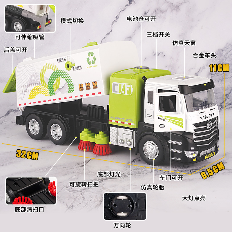 双吸尘电动清扫车合金儿童玩具车自动环卫车扫地车大号清洁车男孩