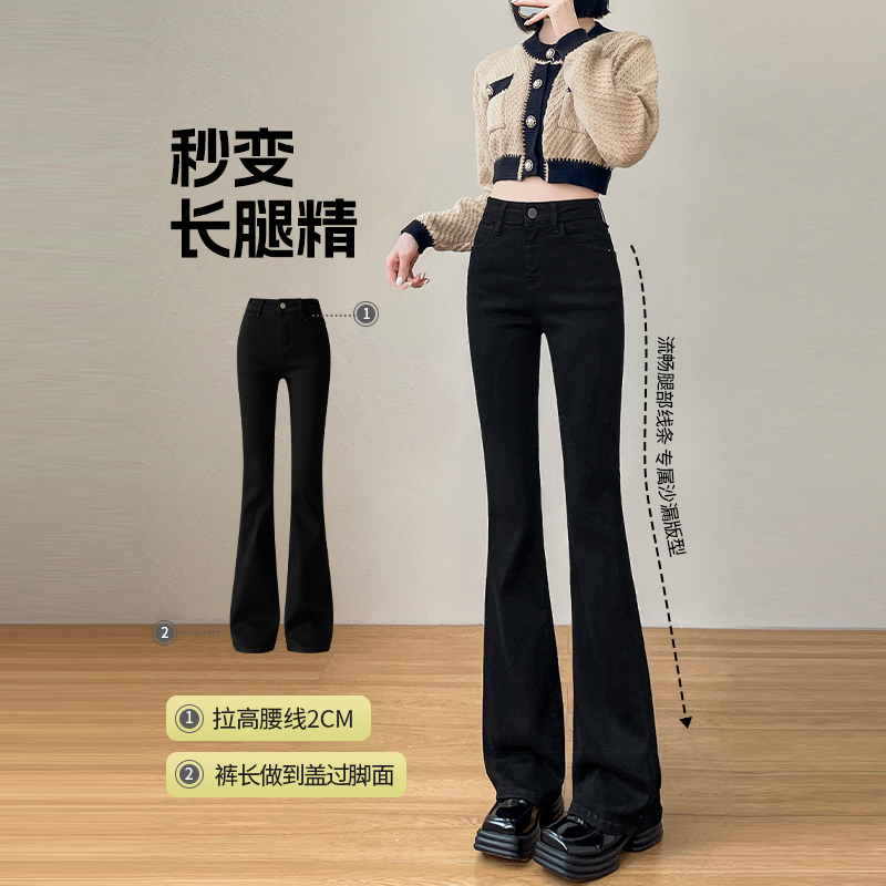 小个子微喇牛仔裤 黑色喇叭裤 高腰显瘦秋季 爆款 子 女春秋2025年新款