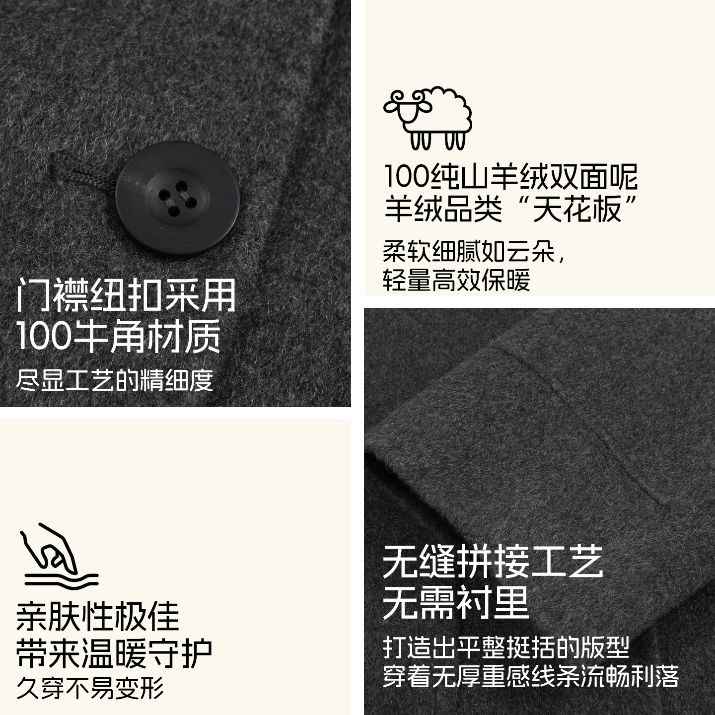 图曼朵灰色双面呢羊毛大衣女秋冬新款 毛呢短外套 高级感小个子短款