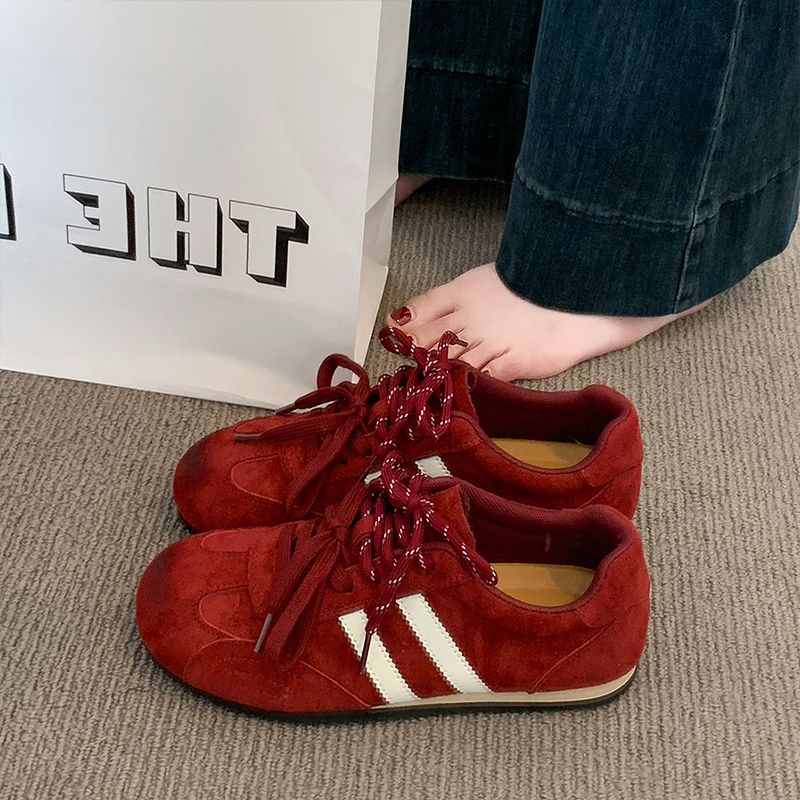 女2025新款 子百搭运动板鞋 秋季 超火阿甘休闲鞋 爆款 复古红色德训鞋