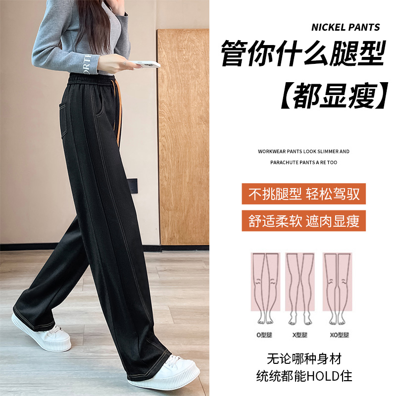 加绒拖地裤 秋冬直筒宽松显瘦小个子窄版 女2025新款 高腰阔腿牛仔裤