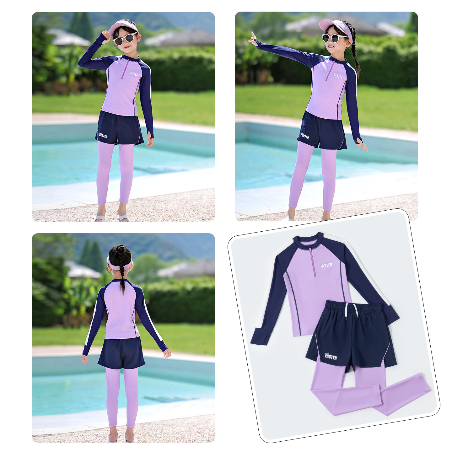 女孩专业训练防晒泳装 游泳衣新款 长裤 儿童泳衣女童中大童分体长袖