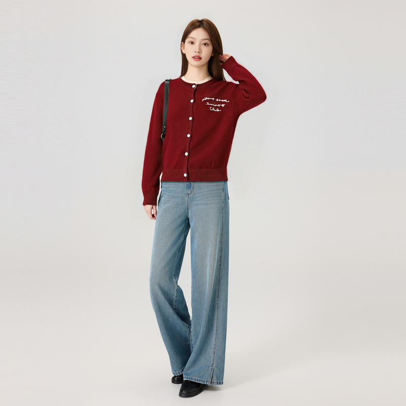 开衫 刺绣设计洋气百搭假两件针织衫 女士毛衣时尚 快鱼2025年冬新款