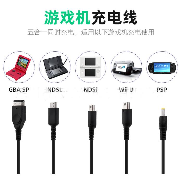 NDSi 2000 NDSL PSP3000 五合一充电线黑色 WiiU GBASP