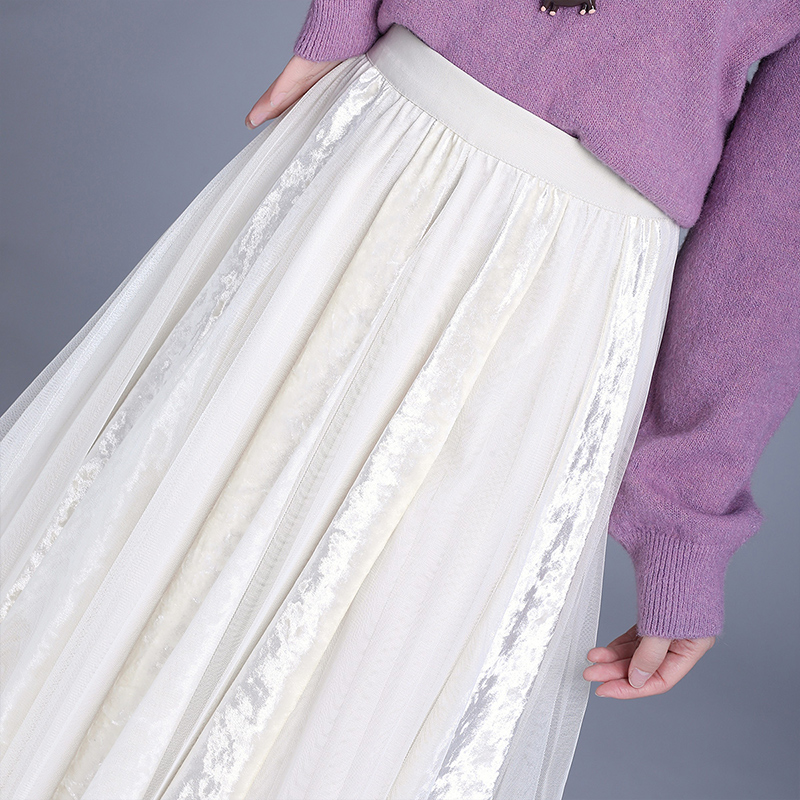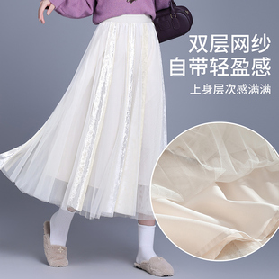 梨形百褶伞裙 优雅长款 LYNEE气质雪纺纱裙 白色大裙摆半身裙女秋季