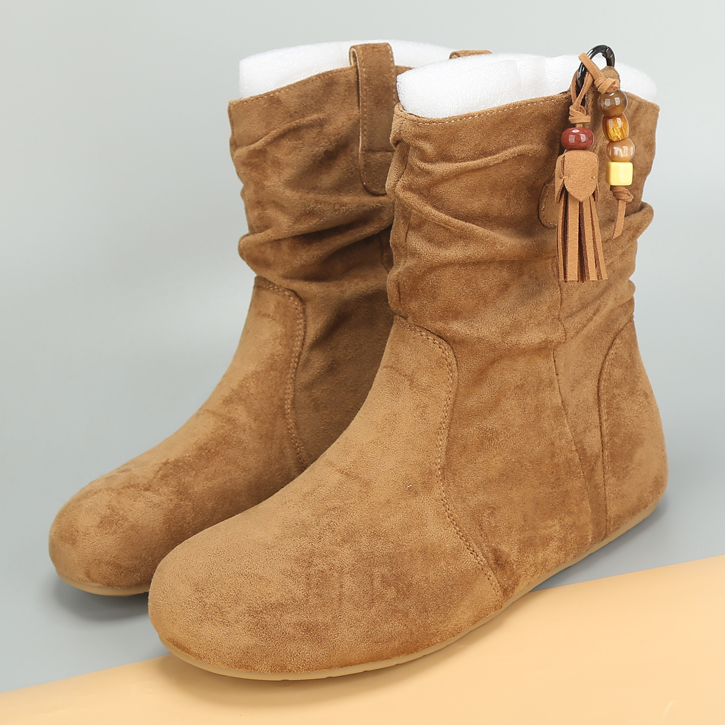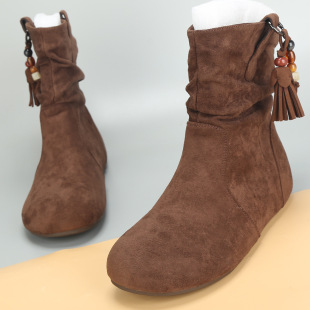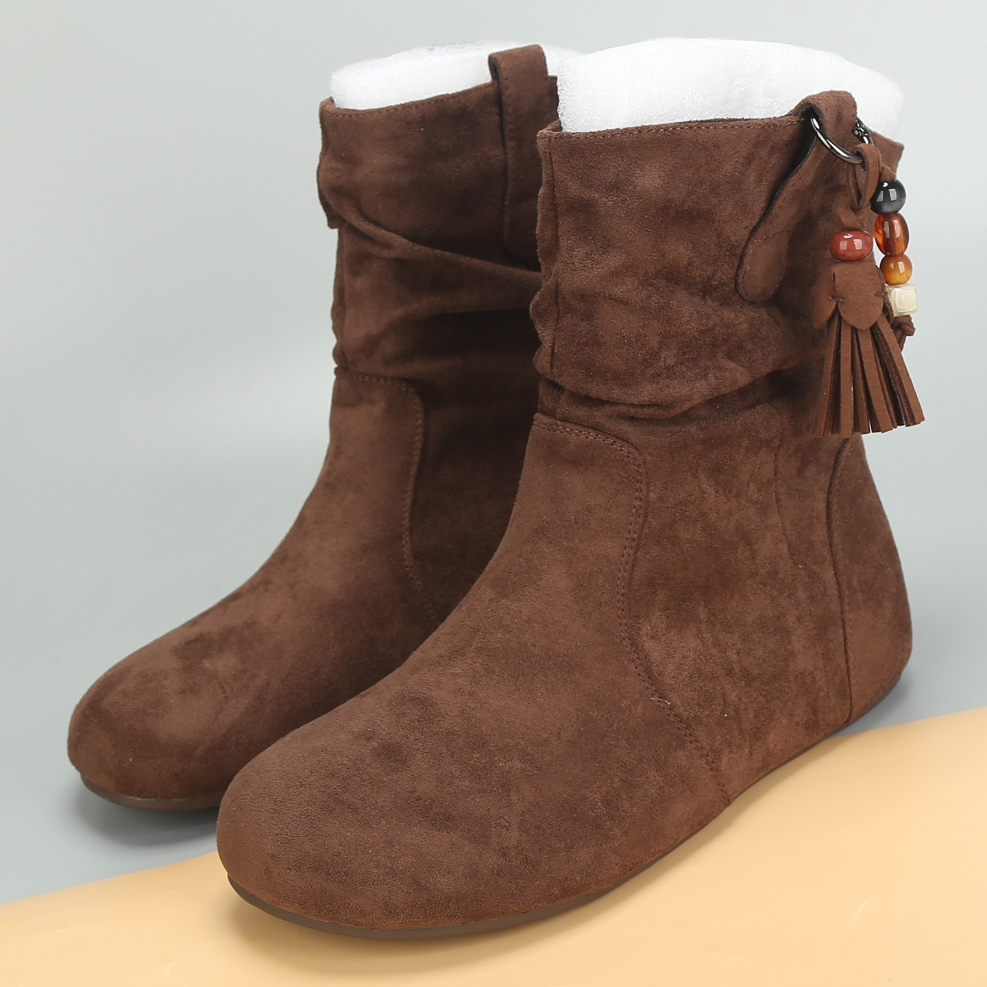 磨砂靴子平底弹力靴短靴宽头女靴 41到43秋冬新款 前掌加宽大码 女鞋