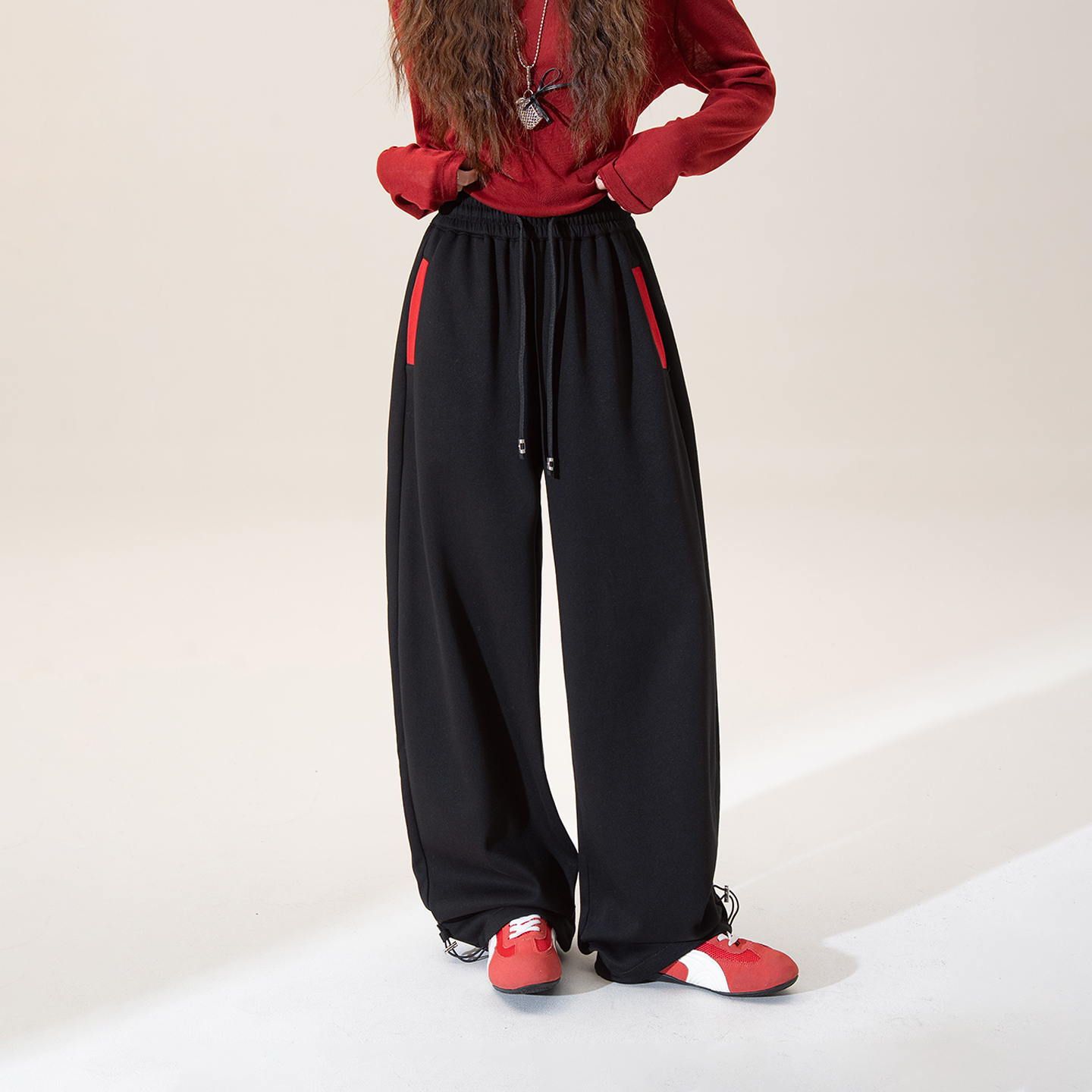 百搭宽松休闲哈伦裤 2025秋冬新款 子 女条纹拼接束脚运动裤 欧货卫裤