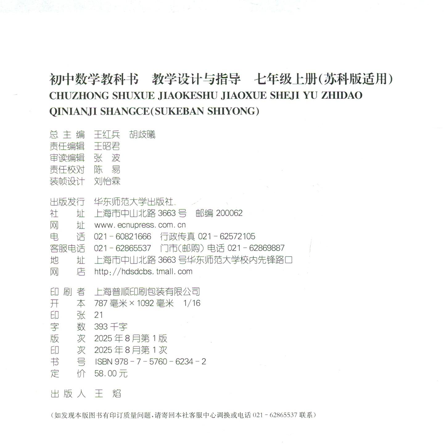 苏科版 适用 华东师范大学出版 统编初中数学教科书 社 数学教学备课教学 教学设计与指导七八7年级上册 胡歧曦 25秋新教材 王红兵