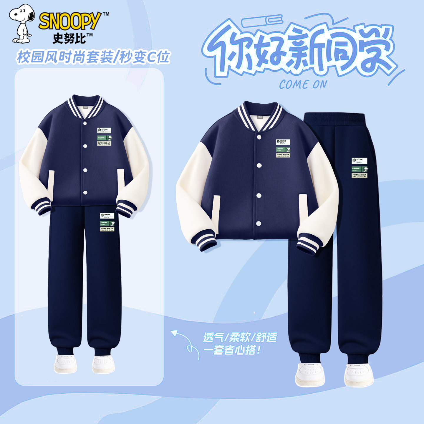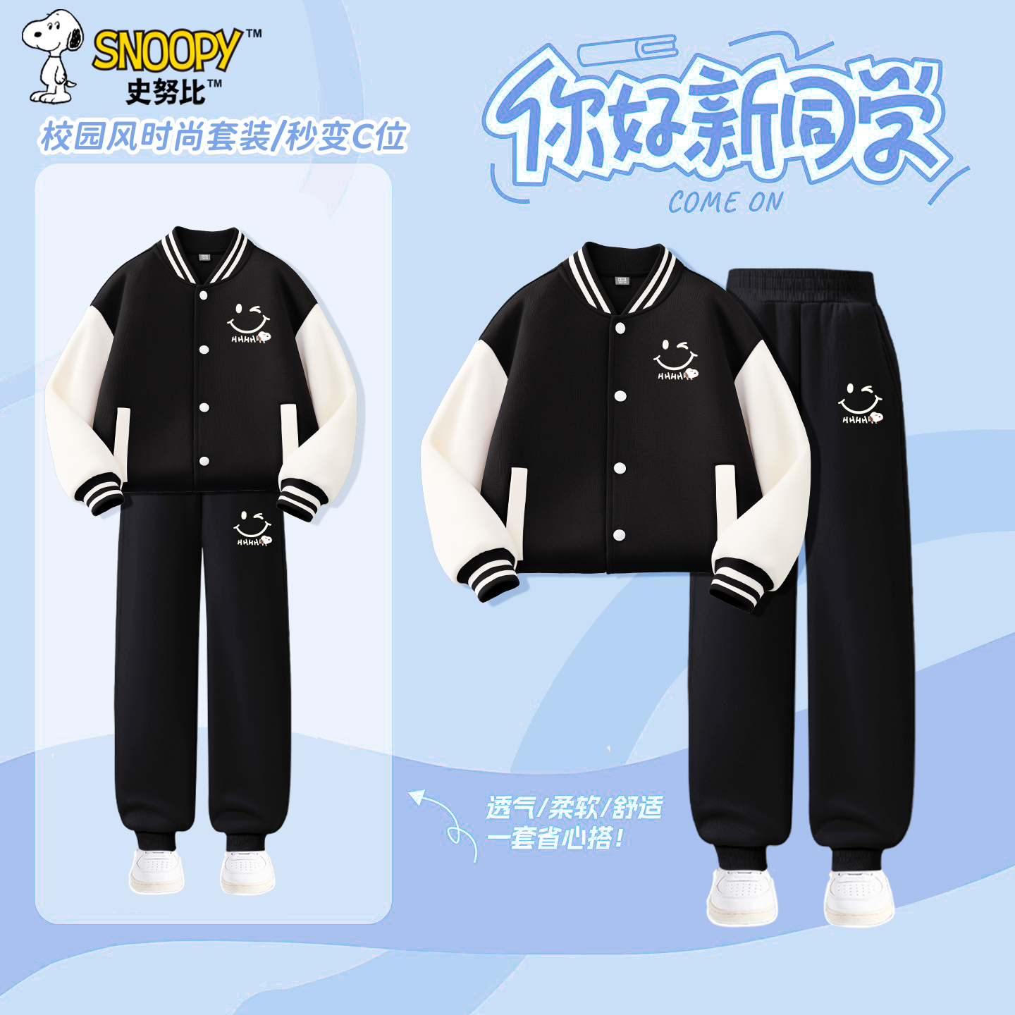 春秋款 休闲裤 儿童棒球服卫裤 中大童炸街开衫 俩件装 史努比男童套装
