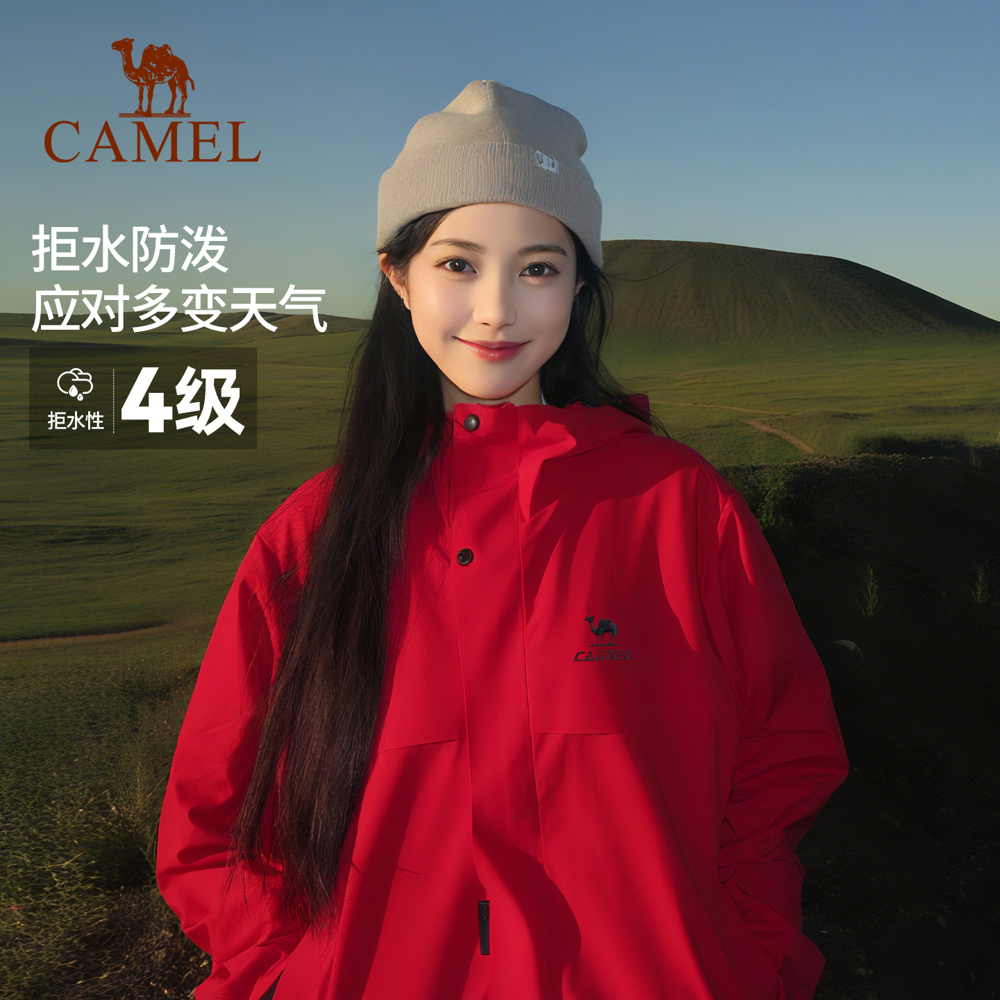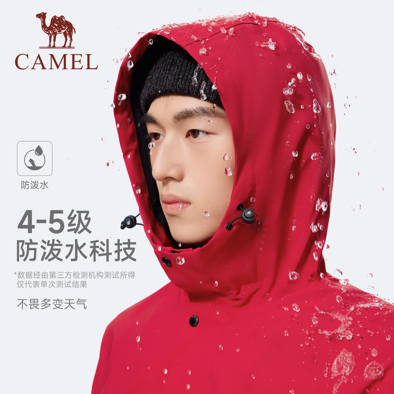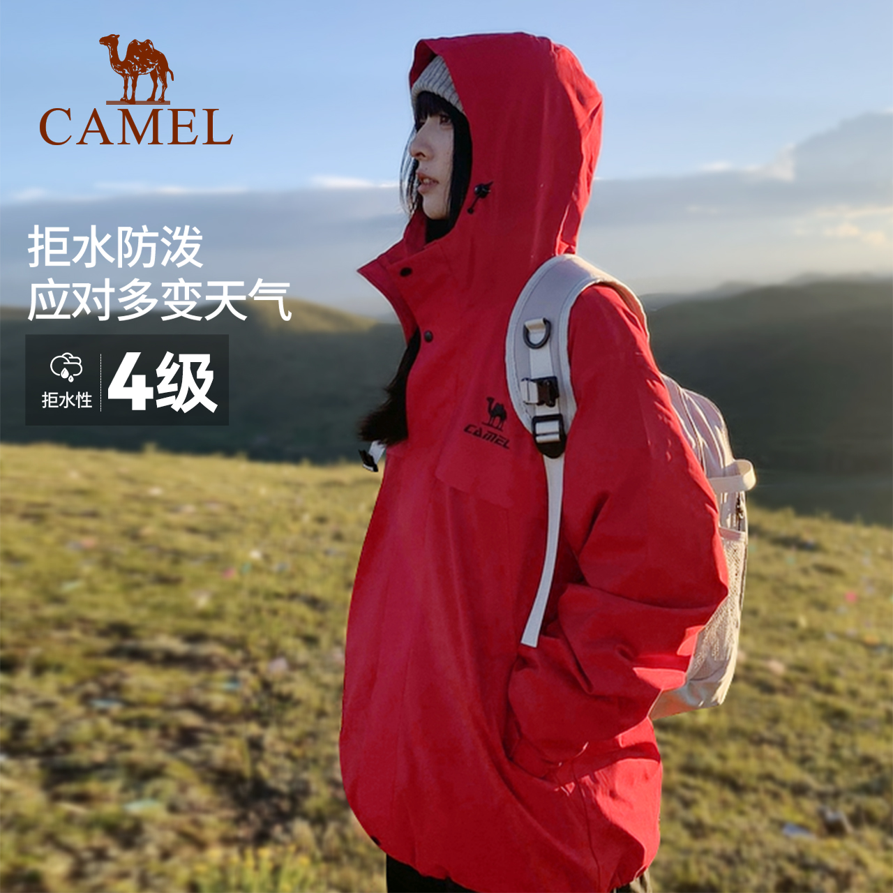 Camel骆驼全地形夹克运动三防外套加绒户外防风防水红色登山服
