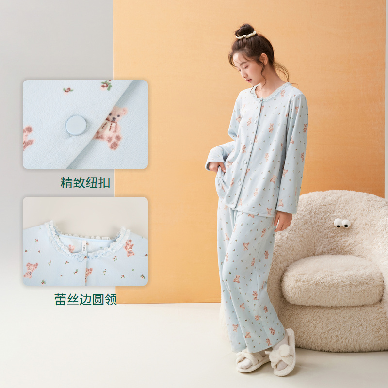 带胸垫防凸点全棉家居服套装 秋冬款 长袖 纯棉秋季 睡衣女士2025新款