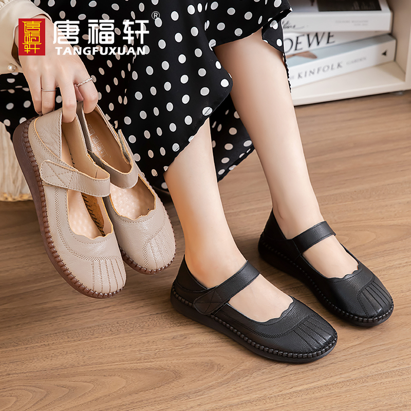 春秋款 牛皮老人鞋 奶奶鞋 女软底舒适中老年女鞋 舒适 皮鞋 真皮妈妈鞋