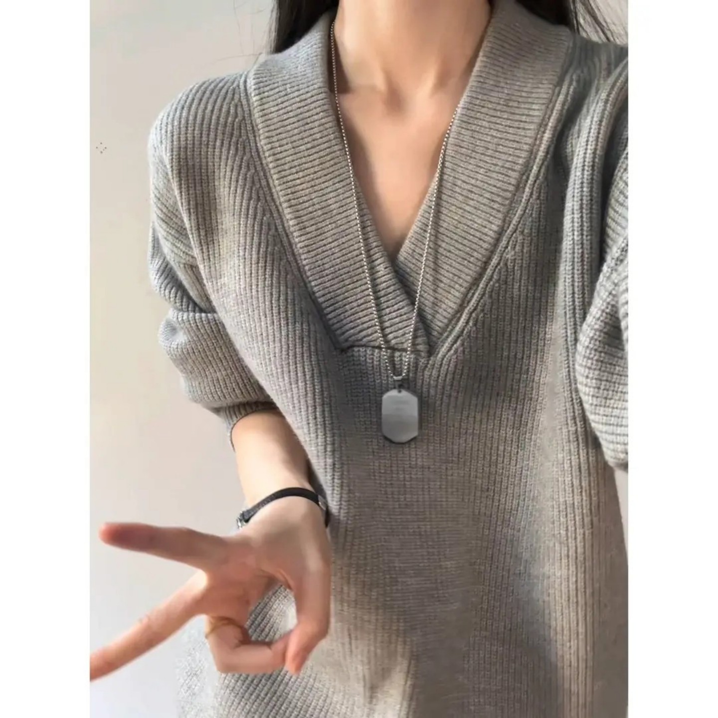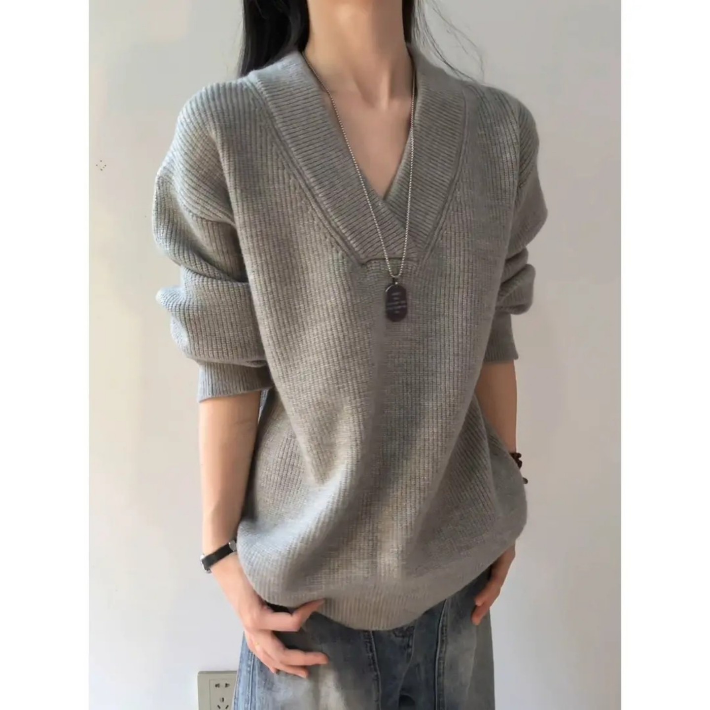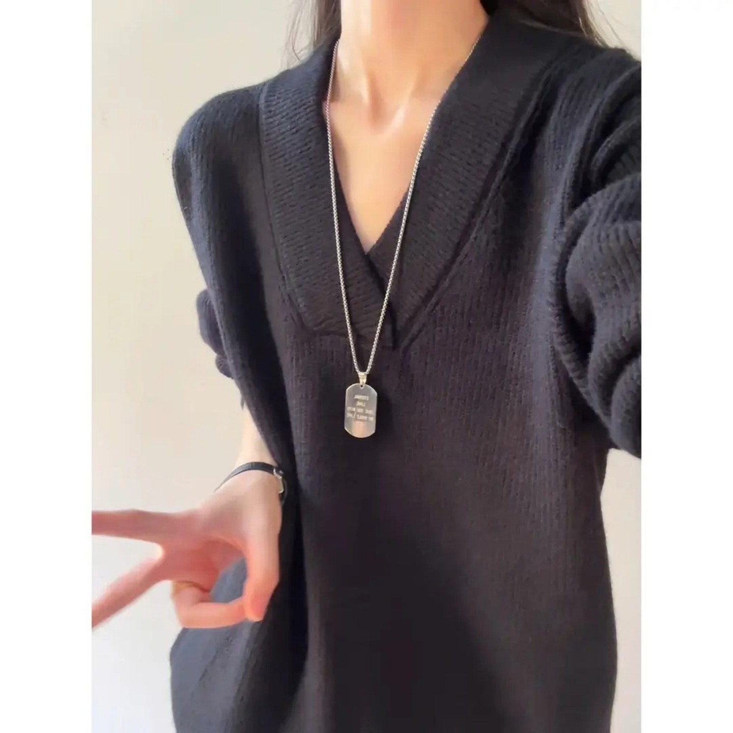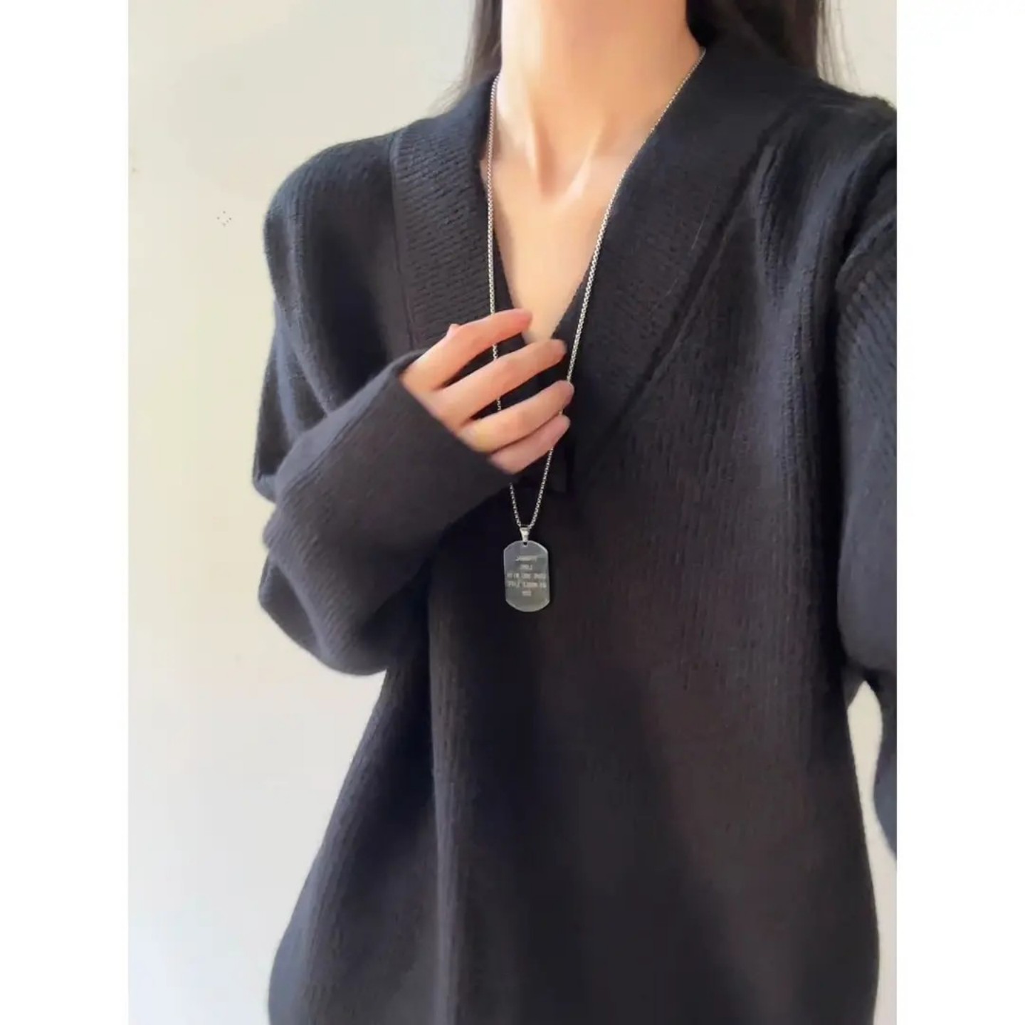 慵懒松弛感针织外套叠穿内搭打底线衫 秋冬季 复古v领毛衣男款 美式
