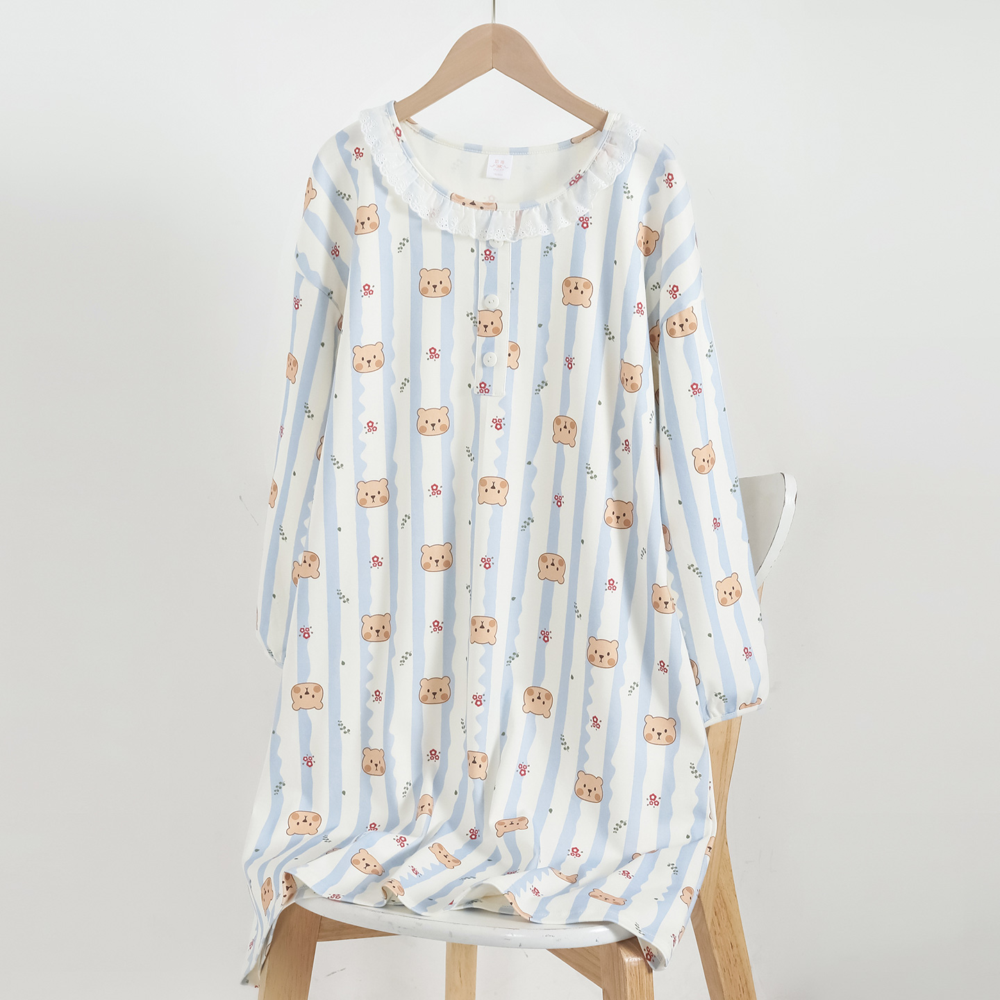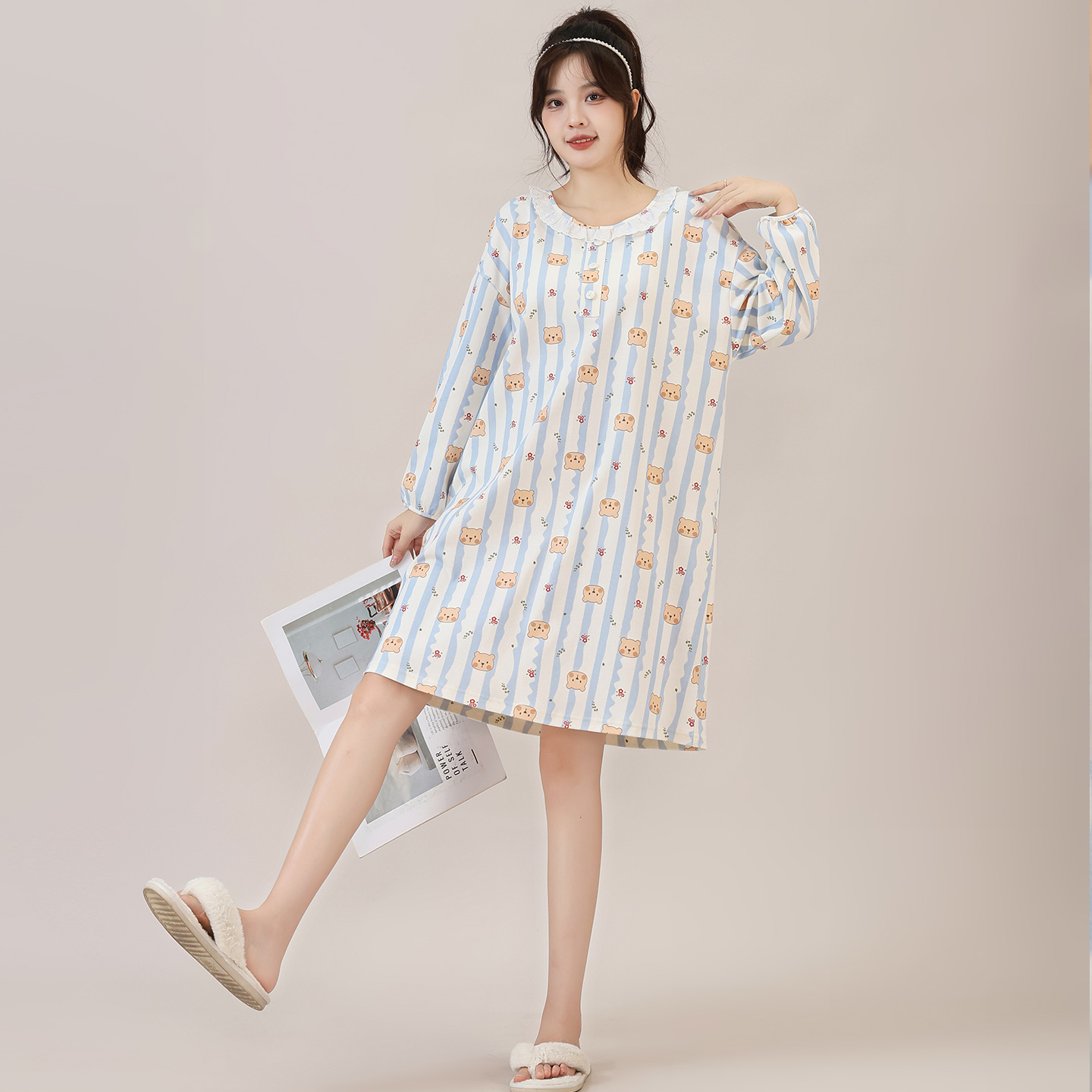 长袖 2025新款 春秋少女家居服 纯棉可爱卡通睡衣女款 耶蒂睡裙女秋季