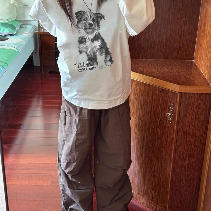设计感小众宽松秋季 t恤女2025新款 潮牌上衣 复古正肩长袖 纯棉美式