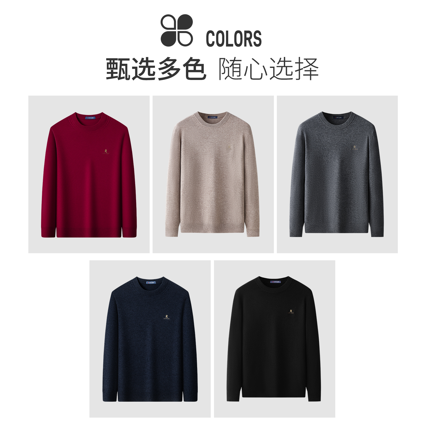 25秋冬圆领毛衣纯色羊毛针织衫 羊绒衫 梦特娇男士 保暖J 羊绒羊毛