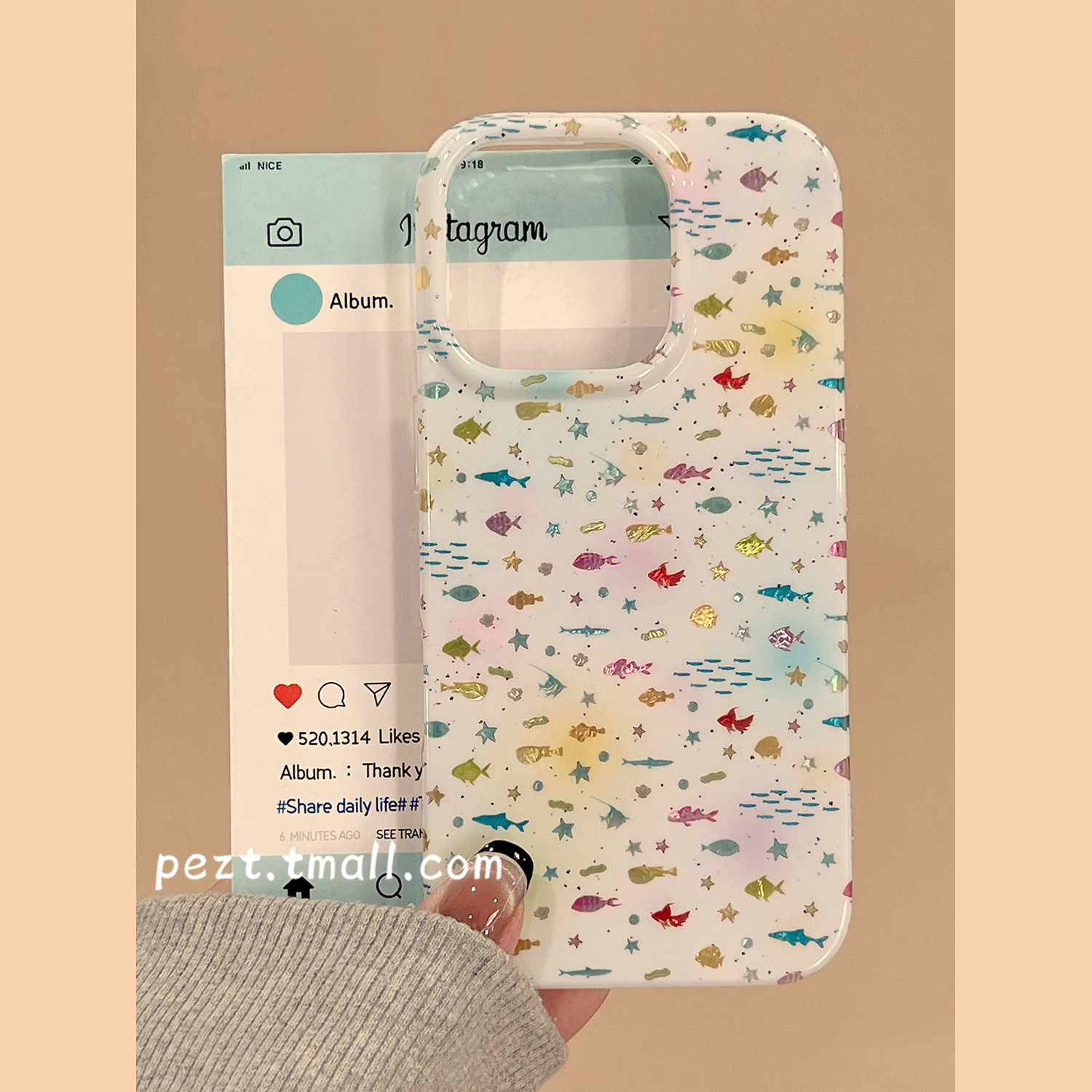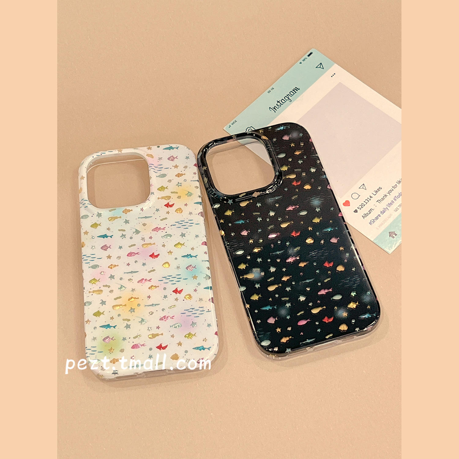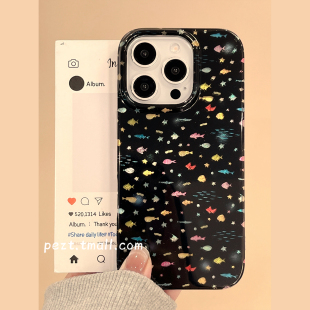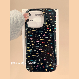 16Pro全包 14女款 ins风彩色晕染小鱼适用苹果17手机壳情侣iphone16promax创意新款 13防摔保护套15ProMax有趣