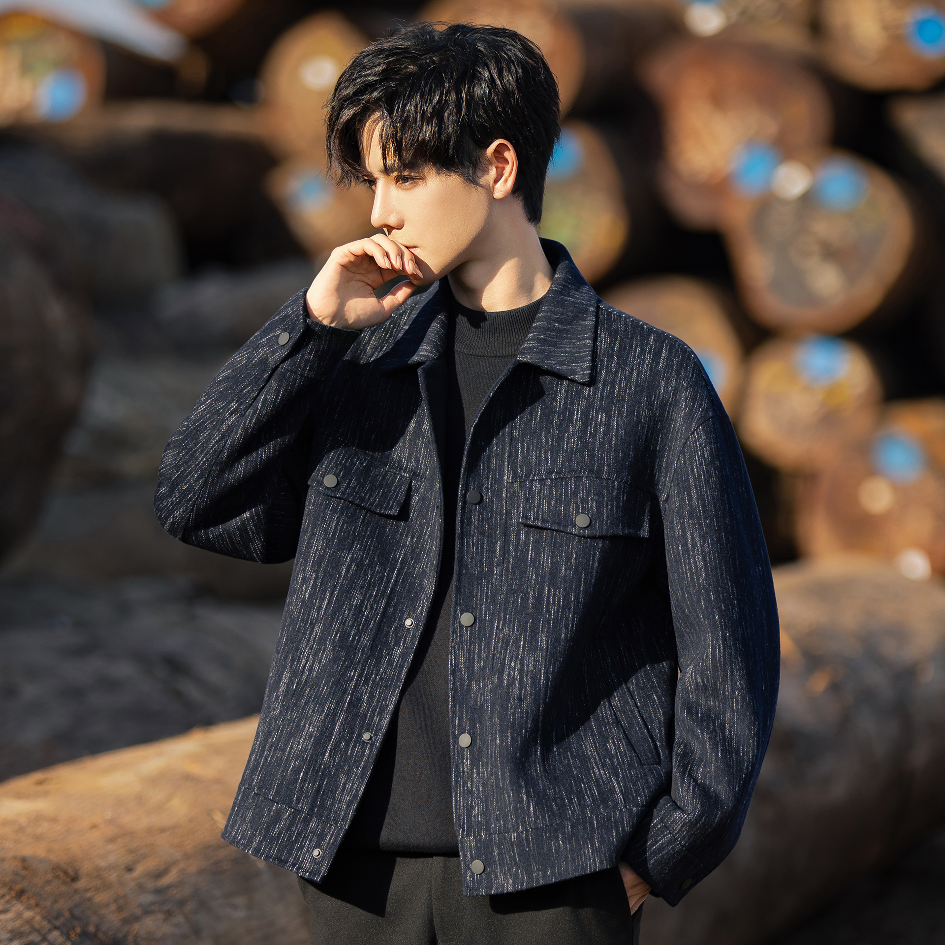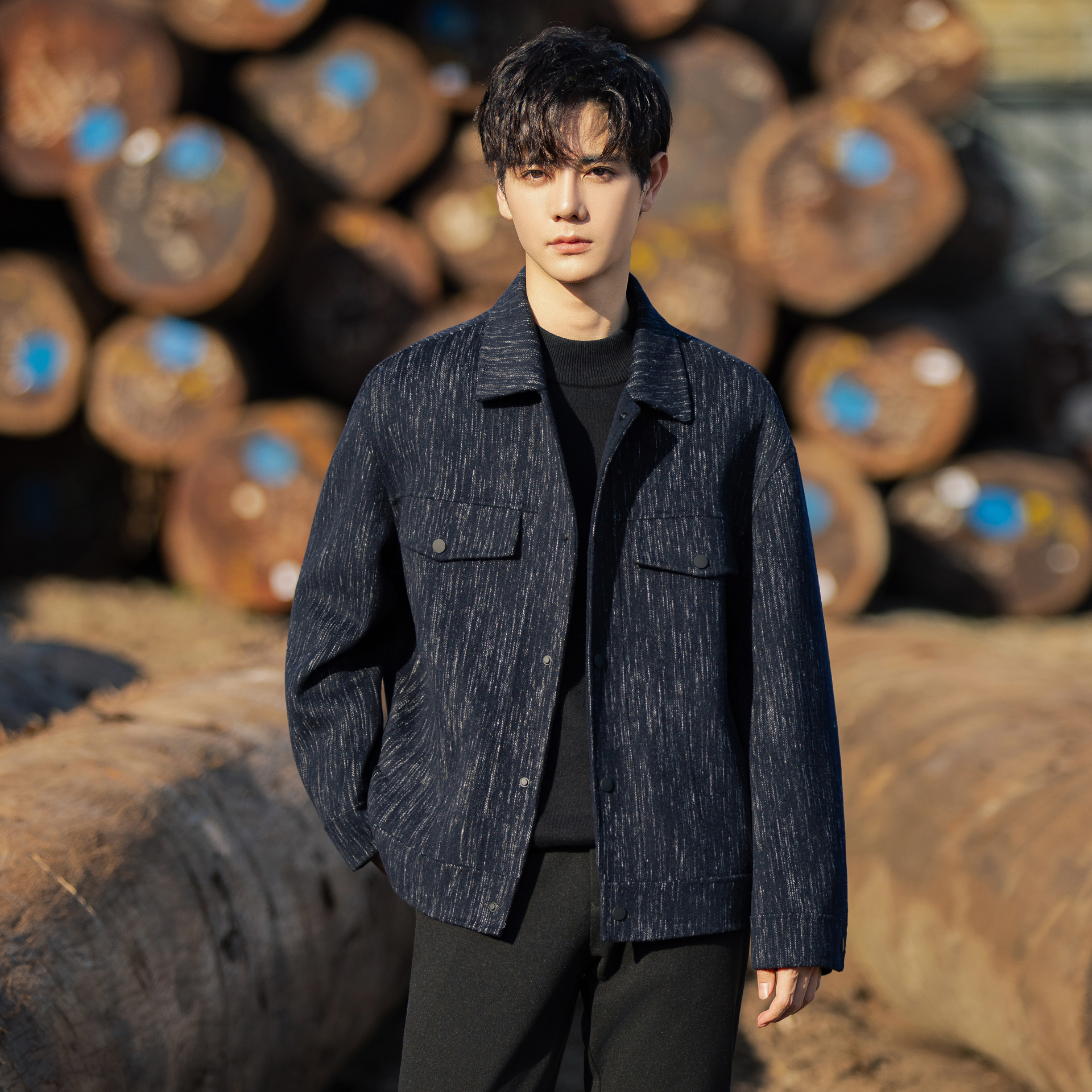 新款 休闲风夹克25秋季 立领挺括有型外套男 海澜之家曾舜晞同款 HLA