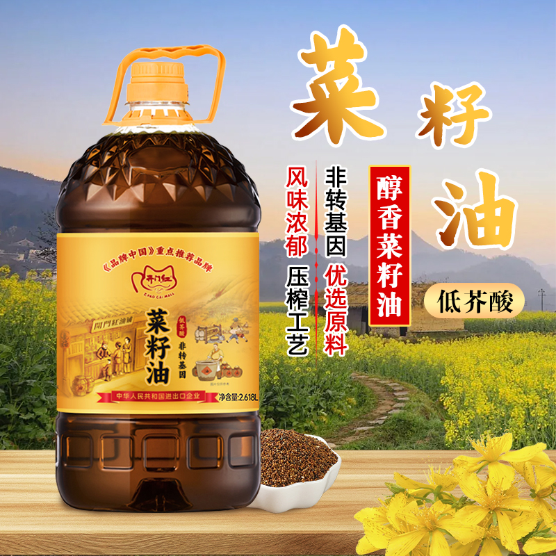 四川纯菜籽油小榨低芥酸熟炸浓香2.618升物理压榨食用油家用桶装