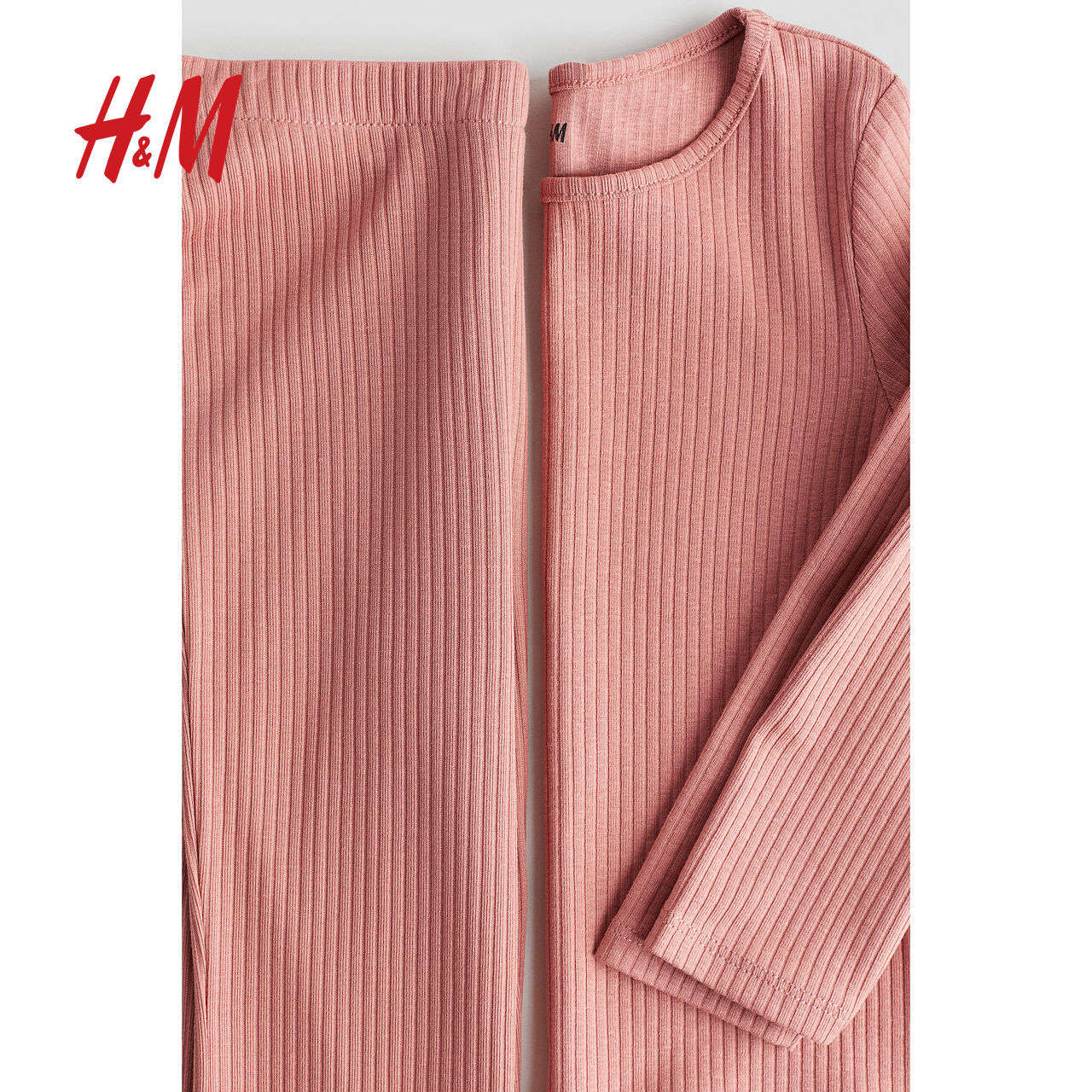 儿童女童2件式 打底裤 红色套装 罗纹棉质长袖 1248316 秋季 HM童装