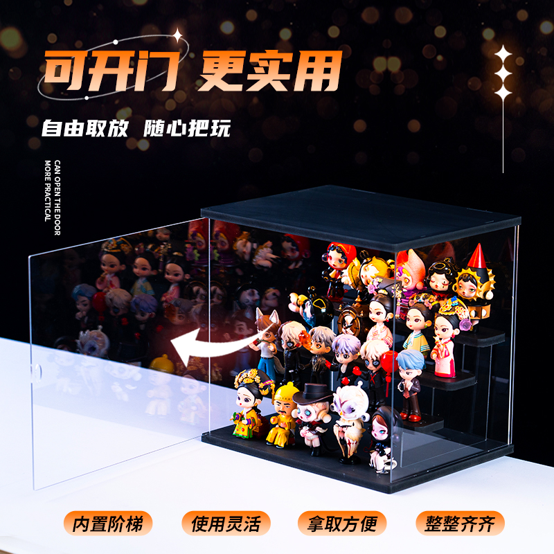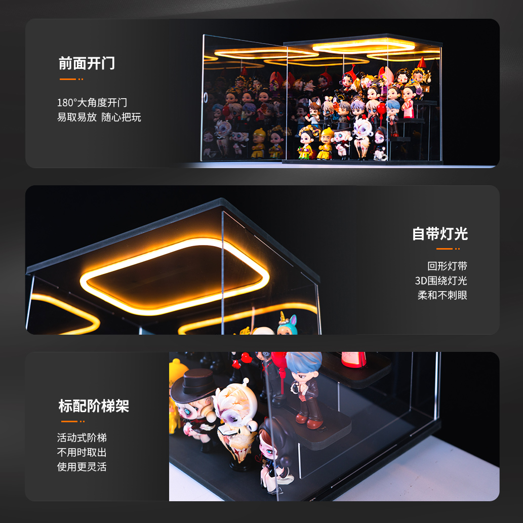 盲盒收纳展示架手办娃娃立牌展示盒亚克力透明架子摆件带灯展示柜