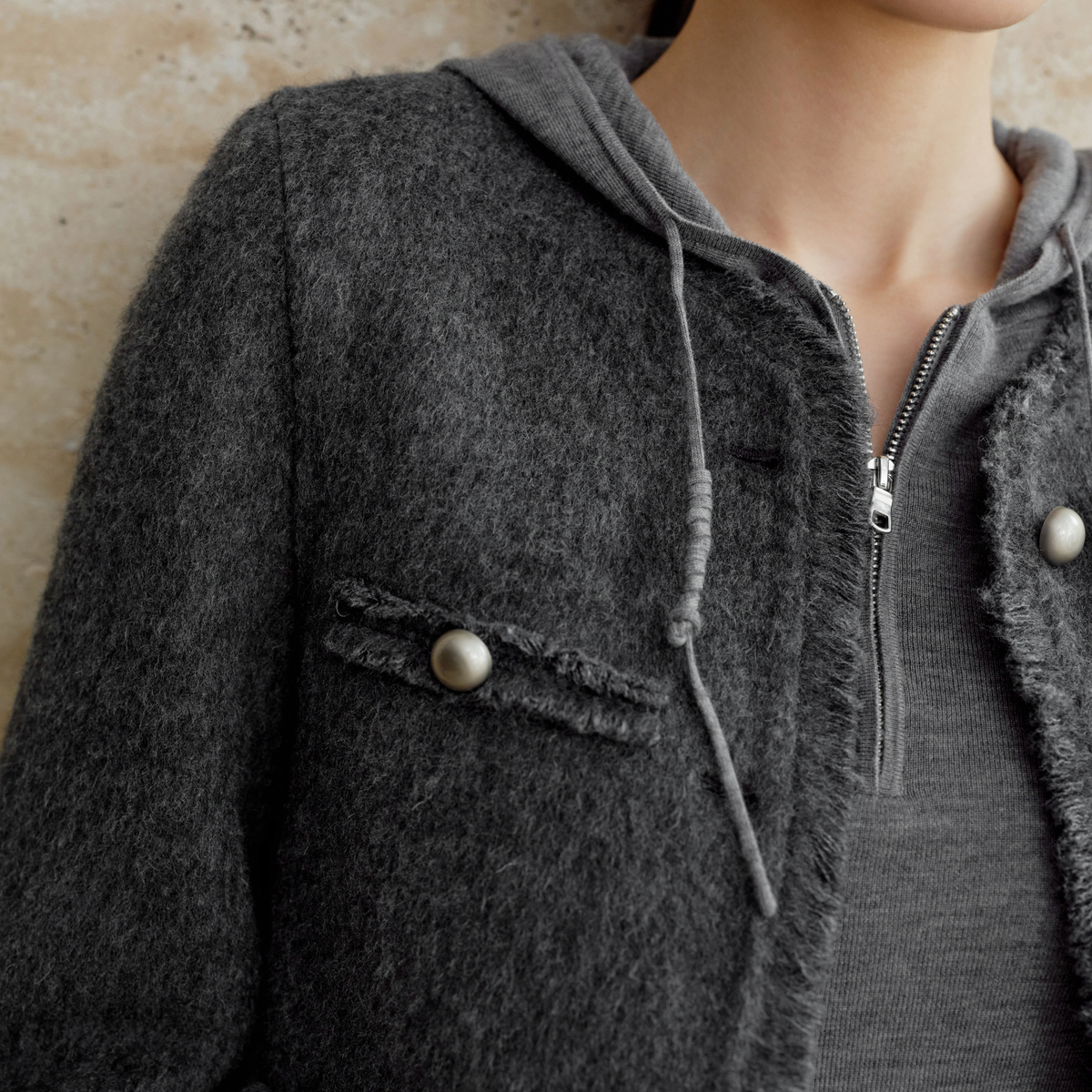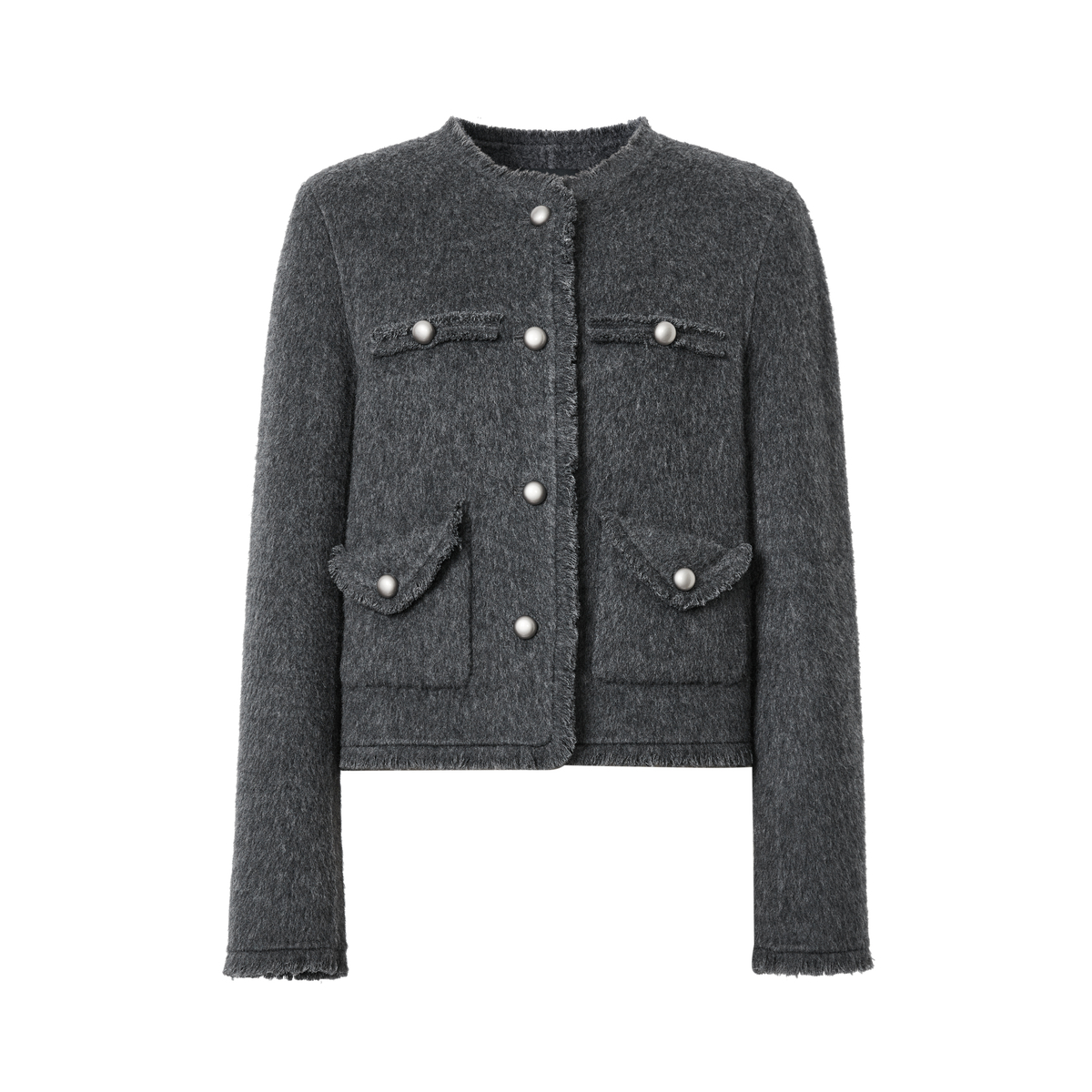 40931093 绵羊毛复古毛边通勤短外套女冬季 艾诺丝雅诗 格雷小香