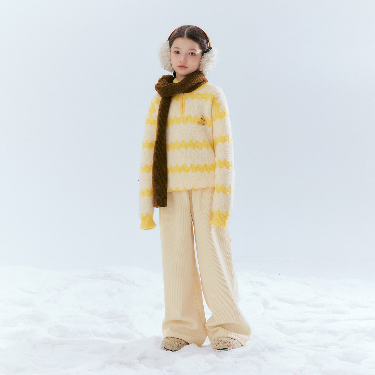 假两件拼接V字翻领毛衣18355703 女装 设计师款 佐丹奴撞色边针织衫