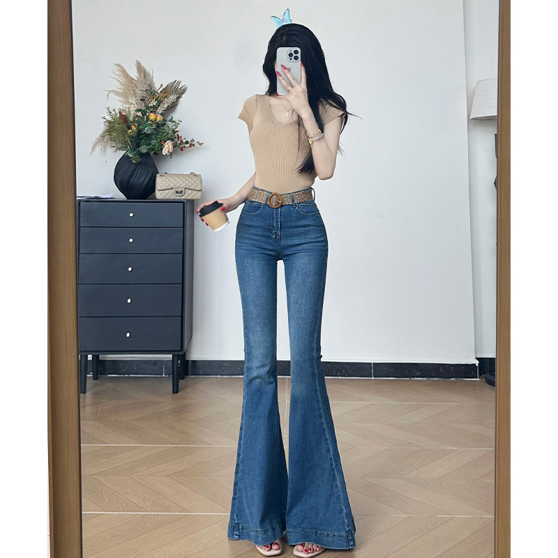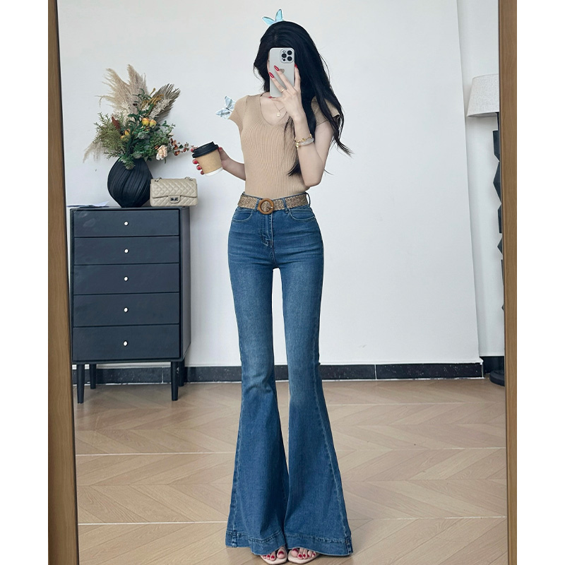 女加绒紧身喇叭裤 乔栈秋冬爆款 美人鱼双V收腰弹力大摆微喇牛仔裤