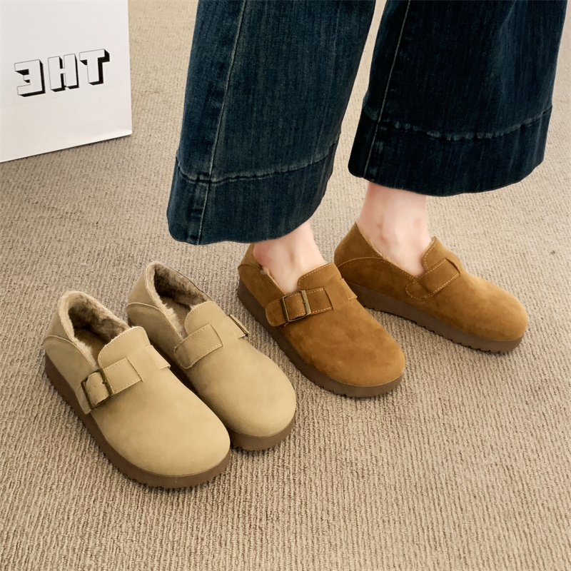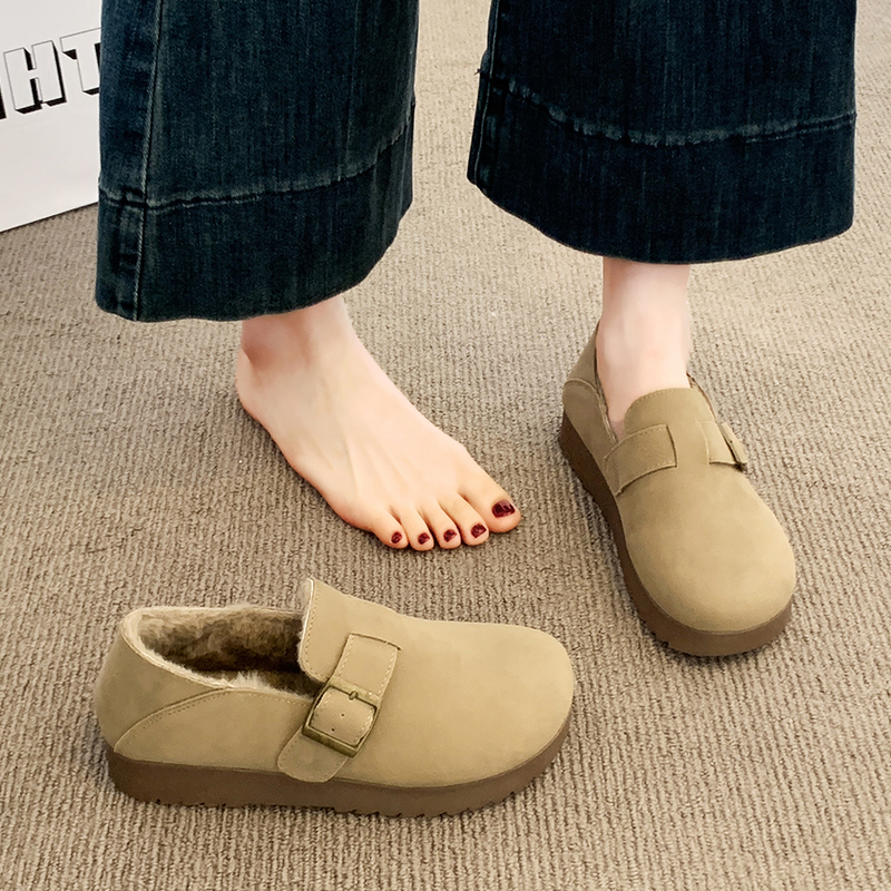 秋冬乐福豆豆鞋 加绒保暖雪地靴女2025新款 女棉鞋 厚底一脚蹬勃肯鞋