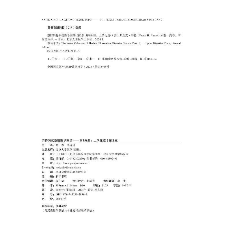 社自由组套书籍 原北京大学医学出版 RT正版 奈特消化系统医学图谱第1分册:上消化道9787565928383