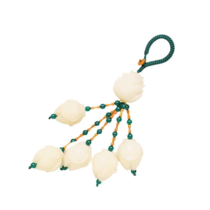菩提根白玉兰花汽车钥匙扣复古风天然创意莲花手机链挂件吊坠男女