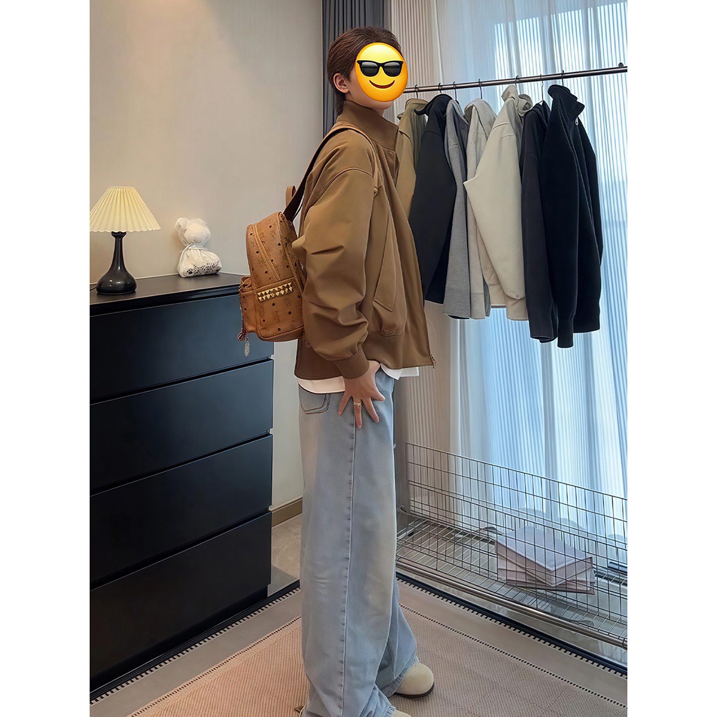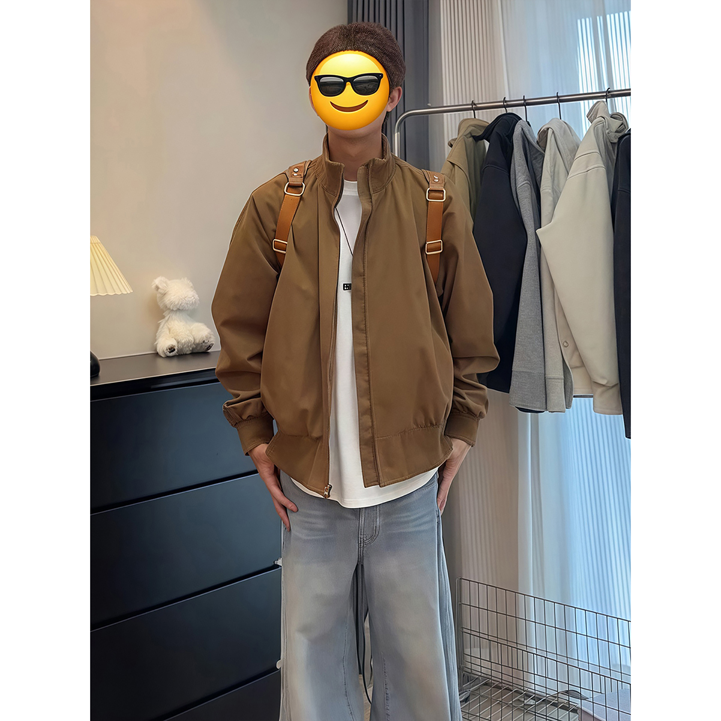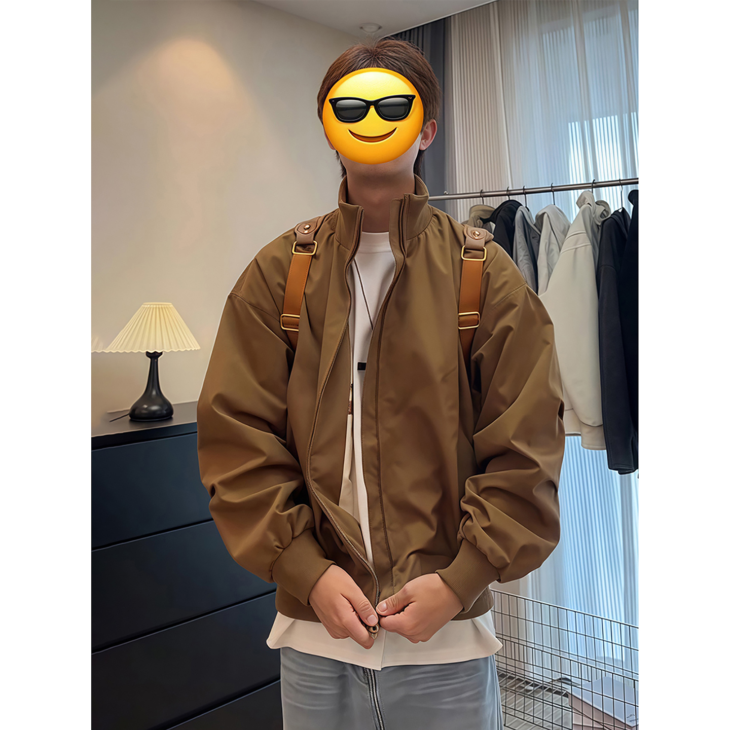 潮牌美式 秋季 立领棒球服bomber飞行员夹克 外套男款 美拉德棕色短款
