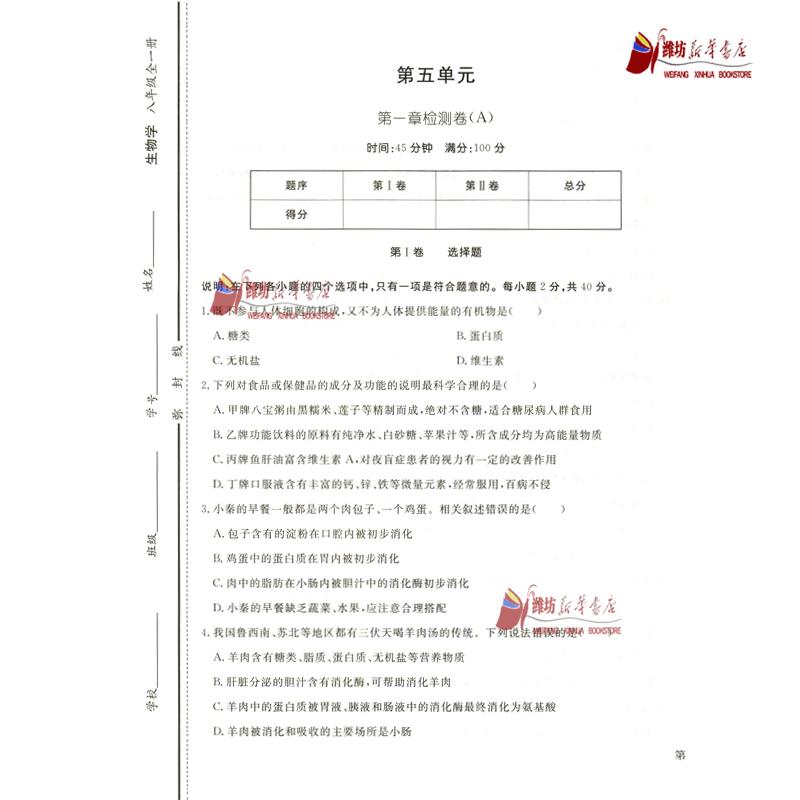 济南版 同步练习册分层检测卷生物学八年级全一册 潍坊专用 2025秋