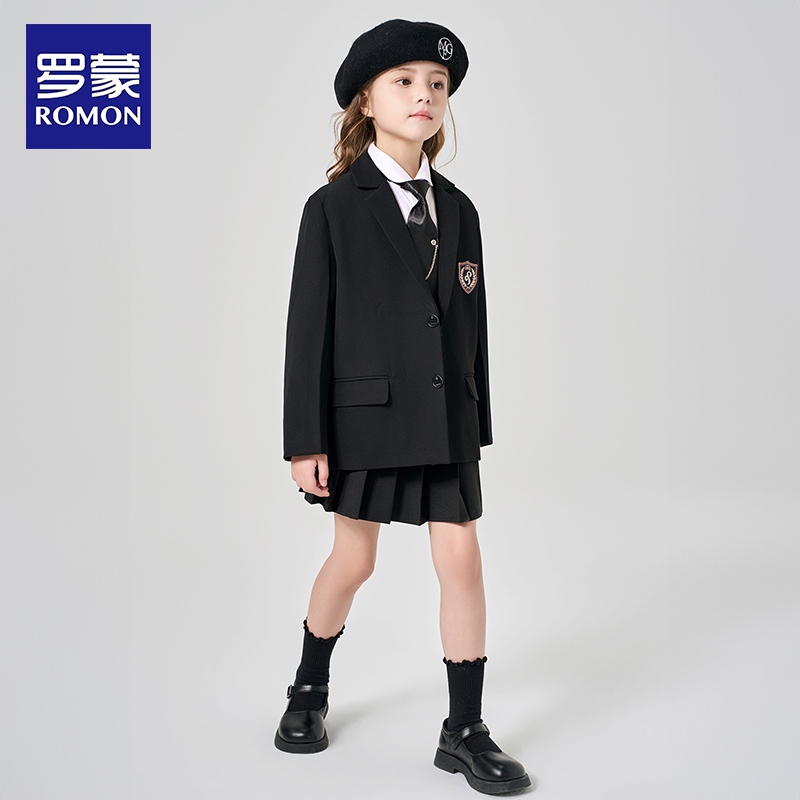 中大童韩版 2025新款 外套洋气女孩休闲学院风西服 套装 罗蒙女童西装