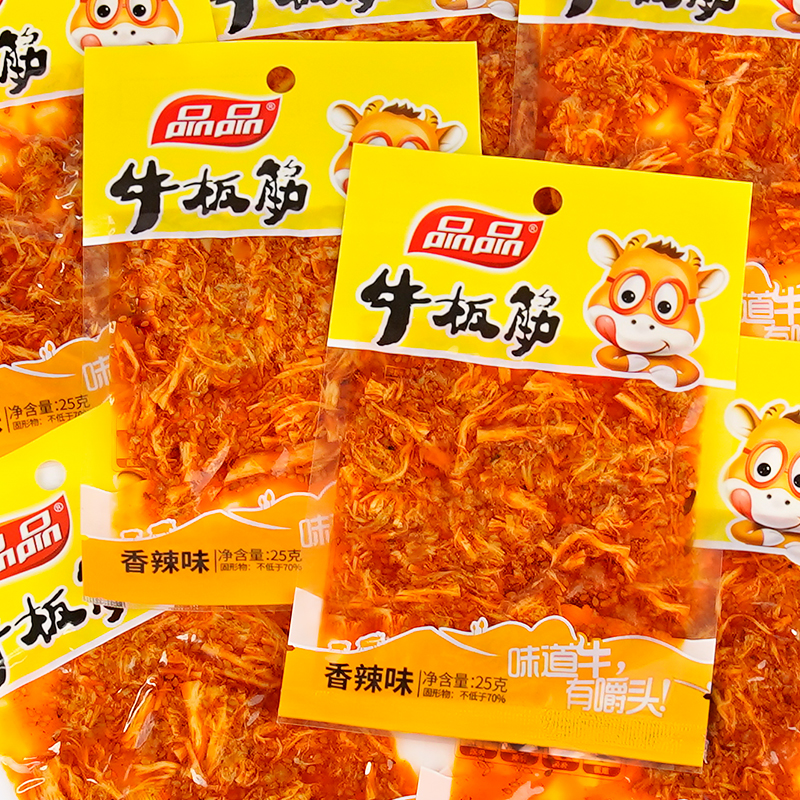 品品牛板筋香辣味25g小包装 辣条开袋即食牛肉干休闲解馋零食小吃