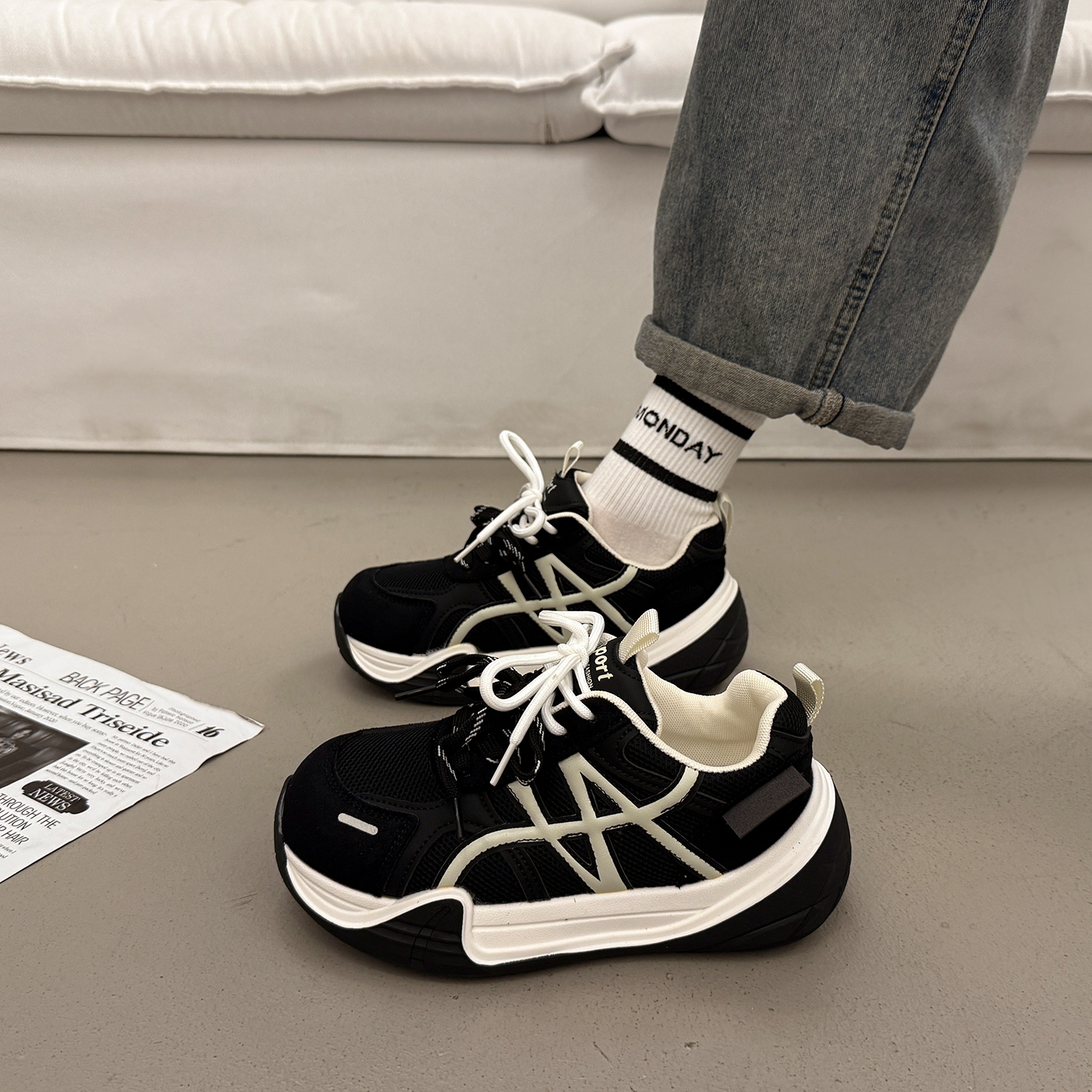 百搭厚底老爹鞋 休闲运动鞋 女增高德训面包鞋 秋季 2025超火新款 爆款