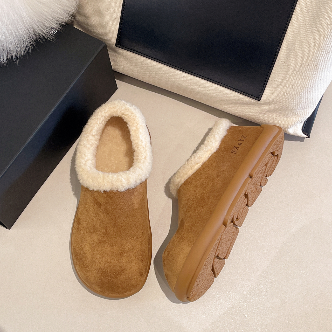 外穿平底复古软底勃肯大头一脚蹬棉鞋 秋冬季 女加绒乐福鞋 豆豆鞋 款