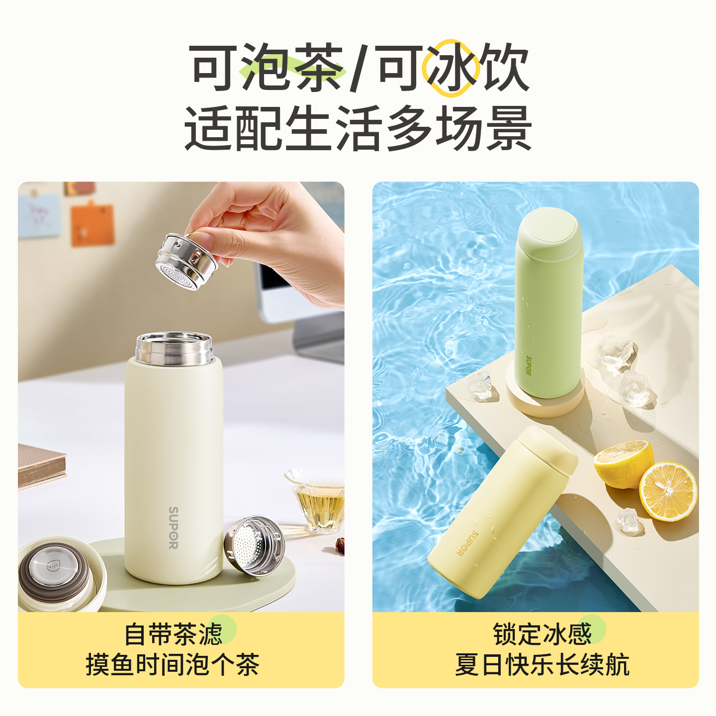 苏泊尔保温杯不锈钢水杯女生2025年高颜值杯子女款 学生定制泡茶杯