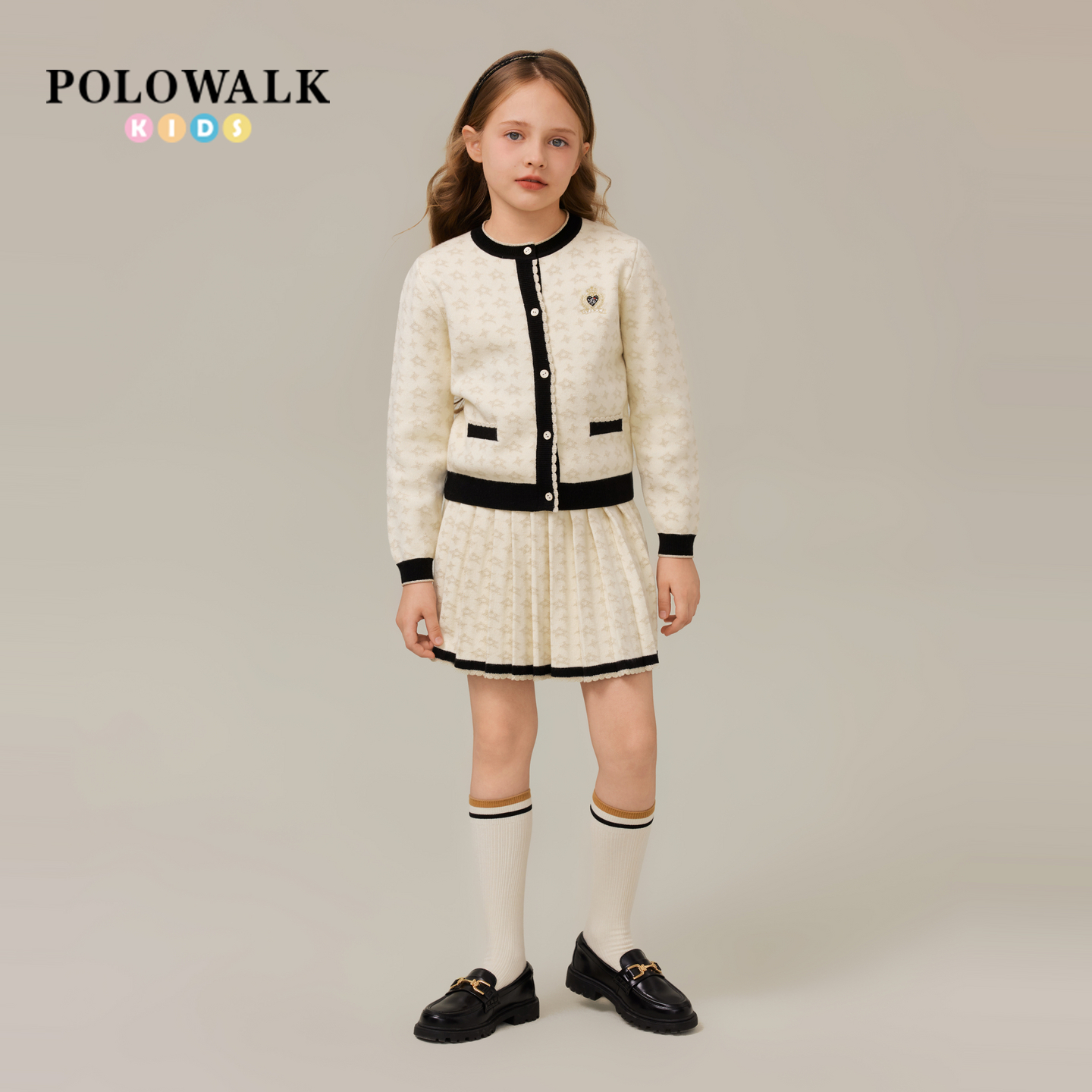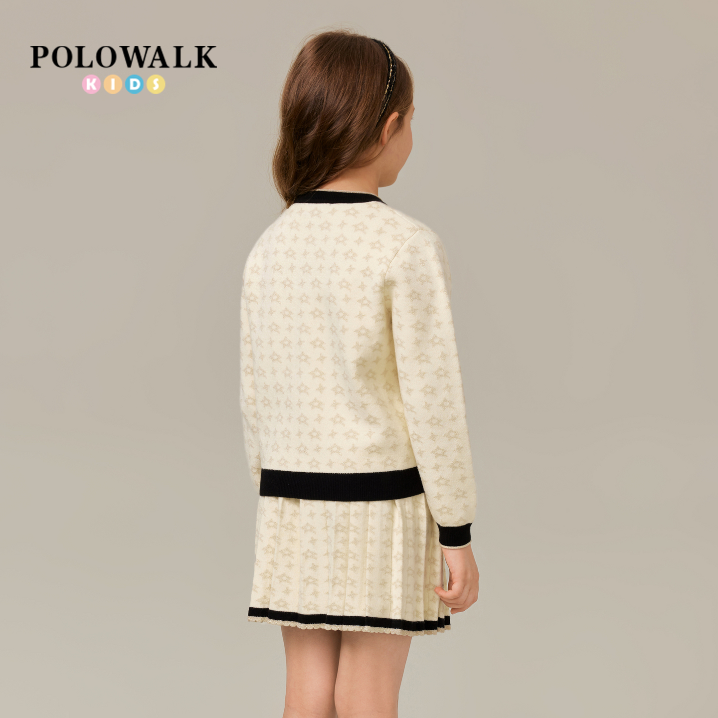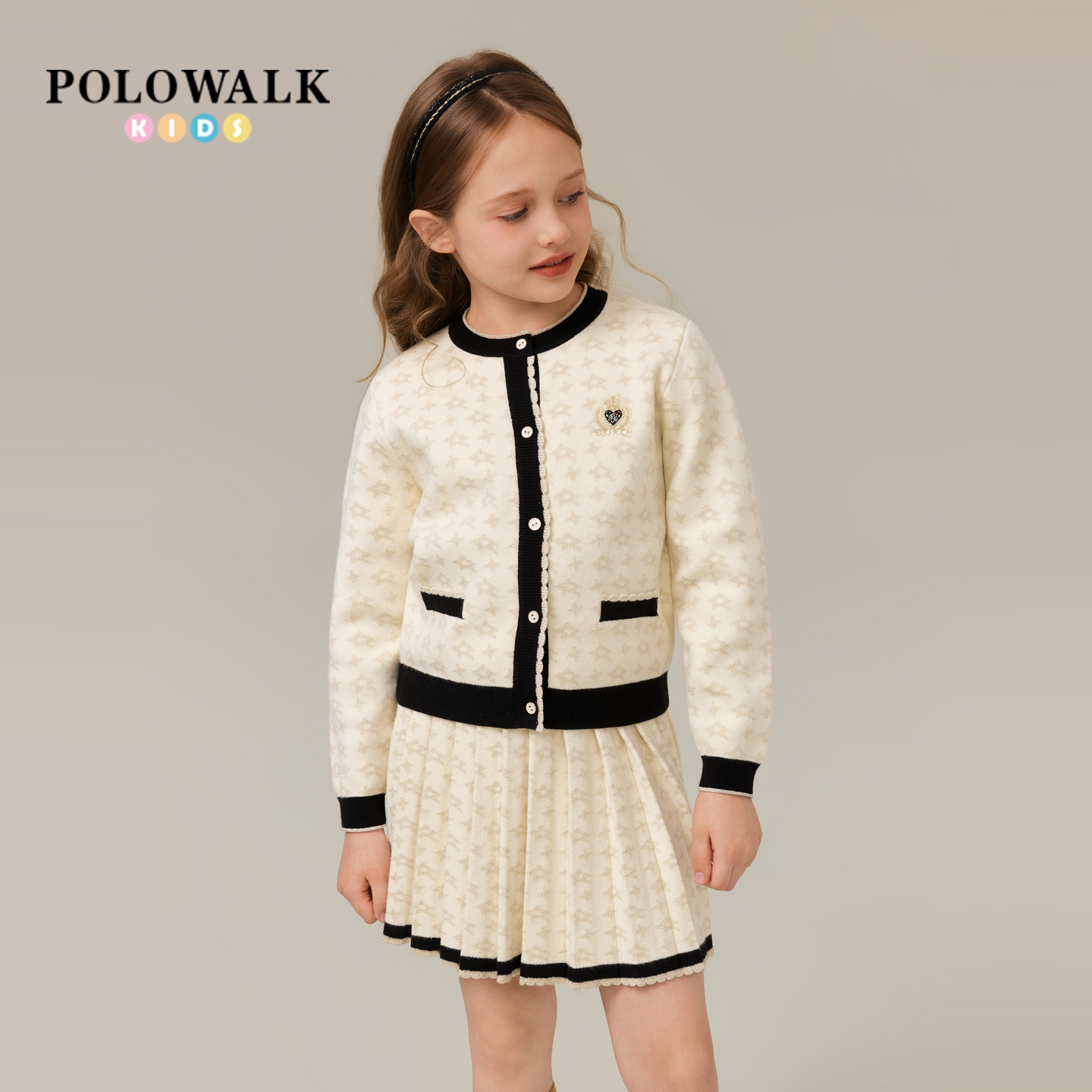 女童长袖 提花圆领女童撞色裙子套装 套装 时尚 2025新品 POLOWALK童装