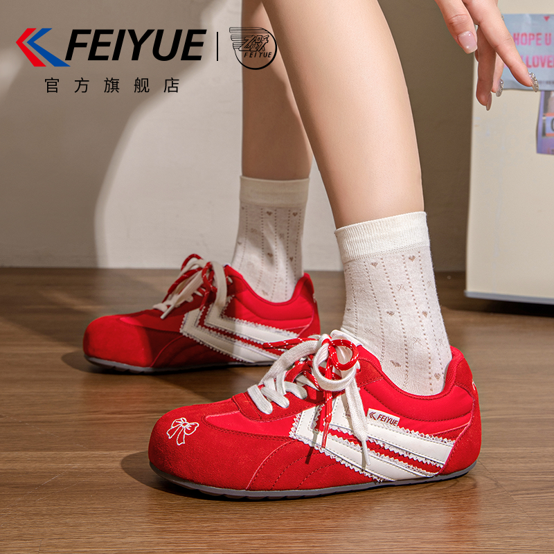 女2025秋季 赛车鞋 新款 运动休闲薄底德训鞋 feiyue 红色鞋 飞跃女鞋