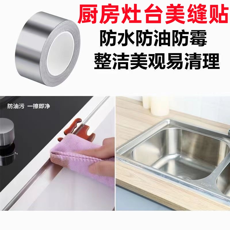 灶台美缝贴胶带防水防油贴耐高温铝箔厨房防油贴纸水槽缝隙卫生间马桶防霉燃气灶封边密封边缘煤气灶修补台面