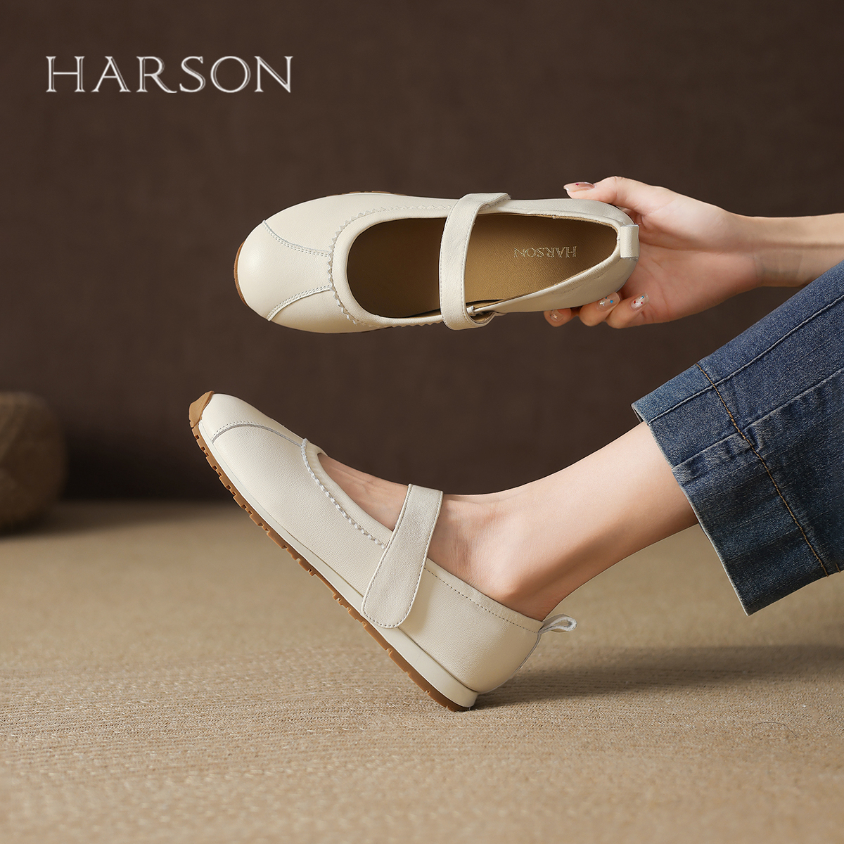 软底女鞋 哈森魔术贴芭蕾风单鞋 圆头浅口玛丽珍鞋 新款 子 女2025秋季