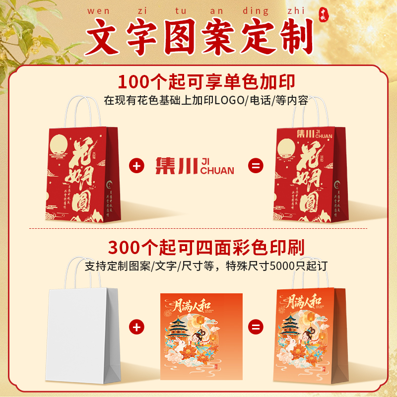 月饼手提袋2025新款 礼品定制伴手礼袋子 中国风中秋节牛皮纸袋包装