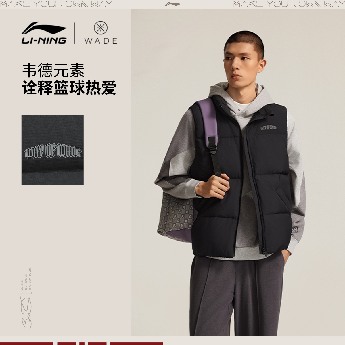 鹅绒运动服 韦德系列防泼水冬季 李宁羽绒马甲男士 2025新款